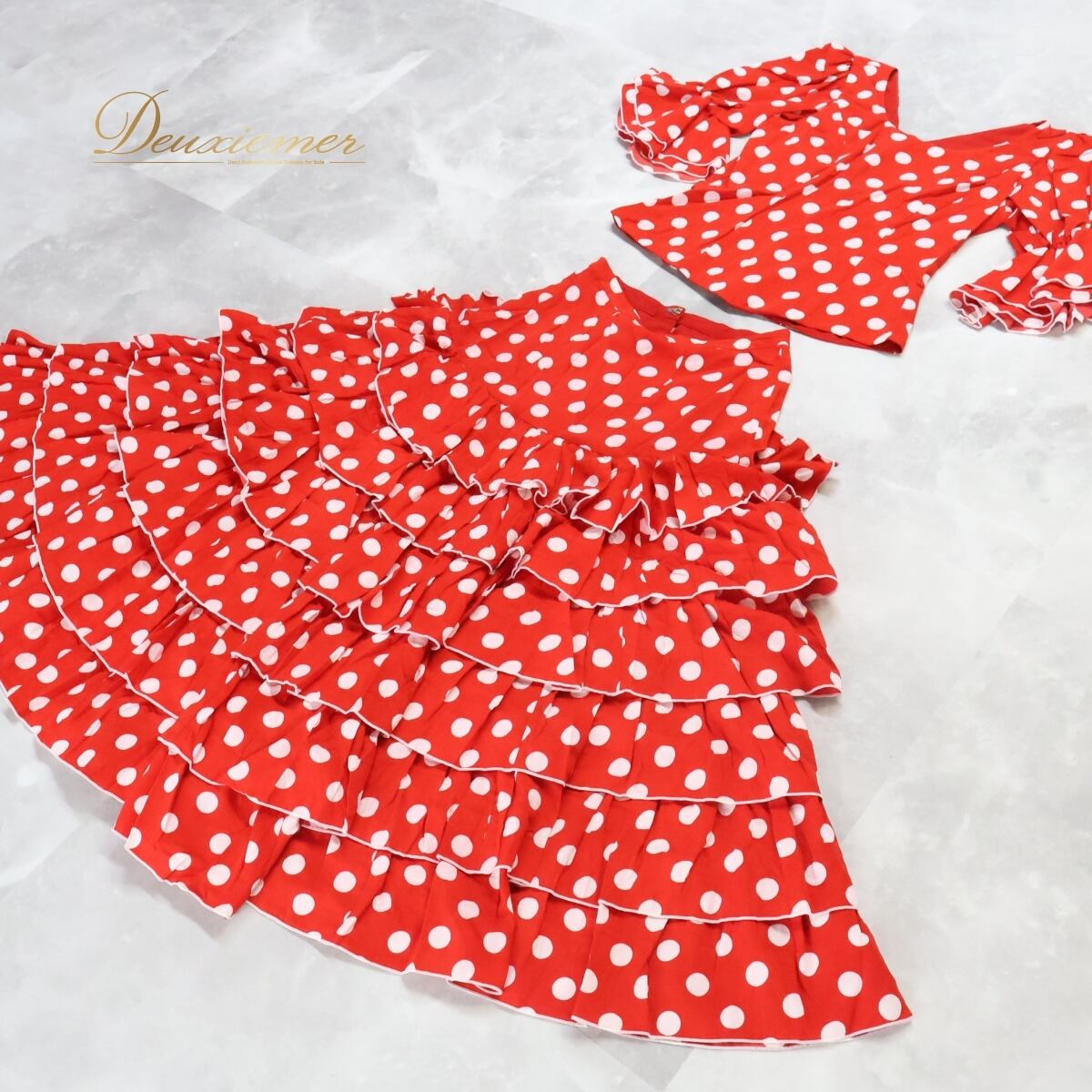 #フラメンコ #衣装 #ダンス #セットアップ #ツーピース #イベント #舞台 #レッド #ファルダ #ポップ #ボランテ #フリル #水玉 #ドット #コスプレ #パフォーマンス #ダンス衣装 #ステージ #美しい #ENUTSU