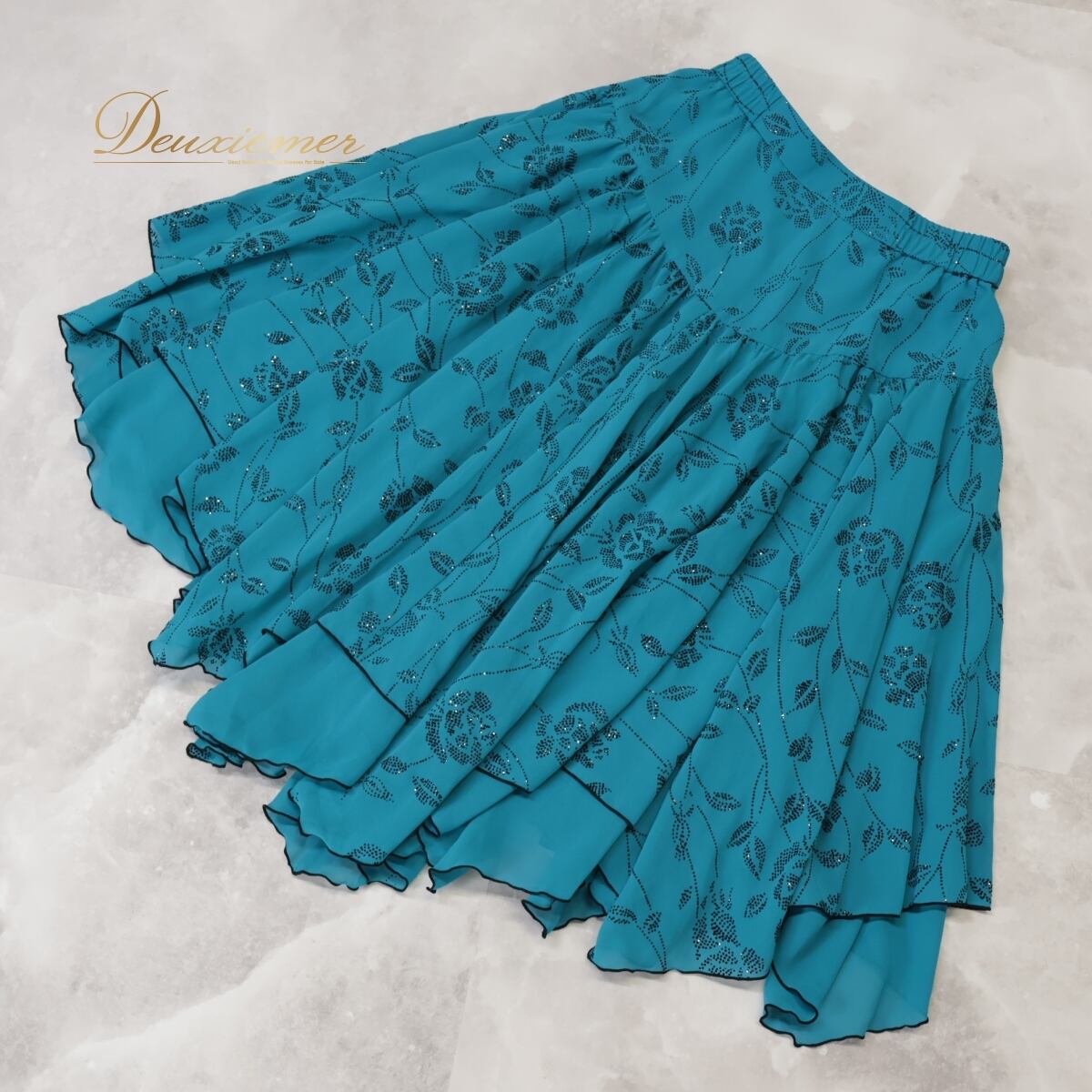 #社交ダンス衣装 #ブライトプロシード #BrightProceed #グリーンスカート #花柄デザイン #ブラックコーデ #レッスンウェア #練習着コーデ #日本製衣装 #かわいいスカート #上品スタイル #大人かわいい #ダンス衣装 #ダンスコスチューム #ステージ衣装 #古着 #中古 #ENUTSU