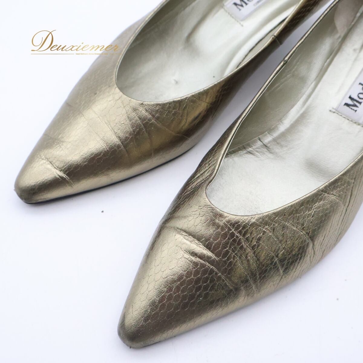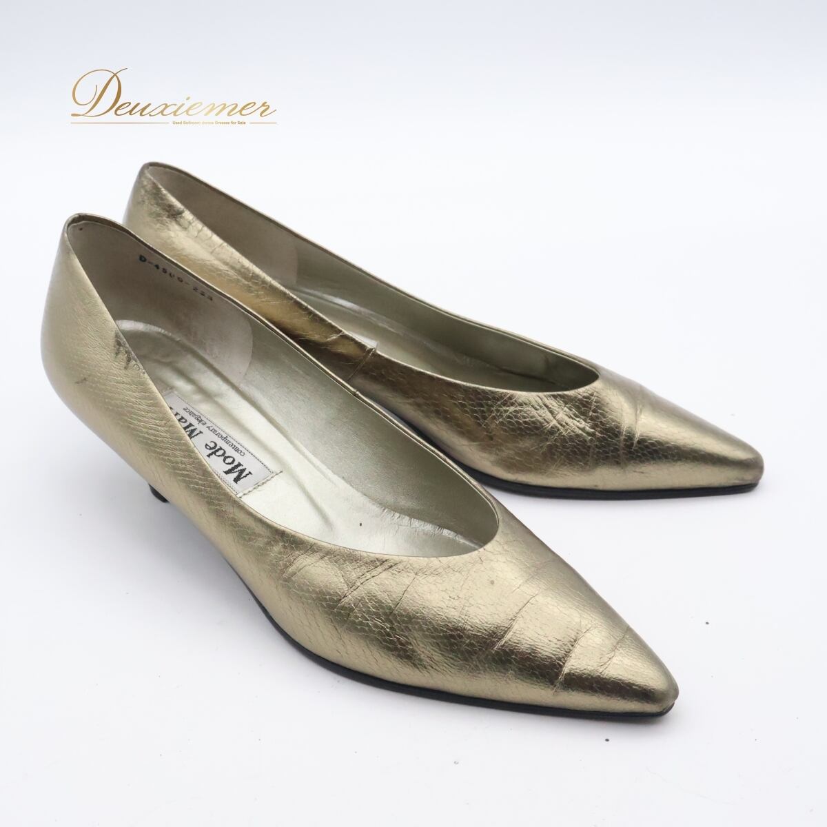【日本製 レディースファッション】23.5CM Mode Marie ゴールド 光沢 艶 パンプス レディース ダンス パーティ イベント ヒール 靴 おしゃれ 低め ファッション ゴールド系 モード 製品 クラシック デザイン スタイル 歩きやすい