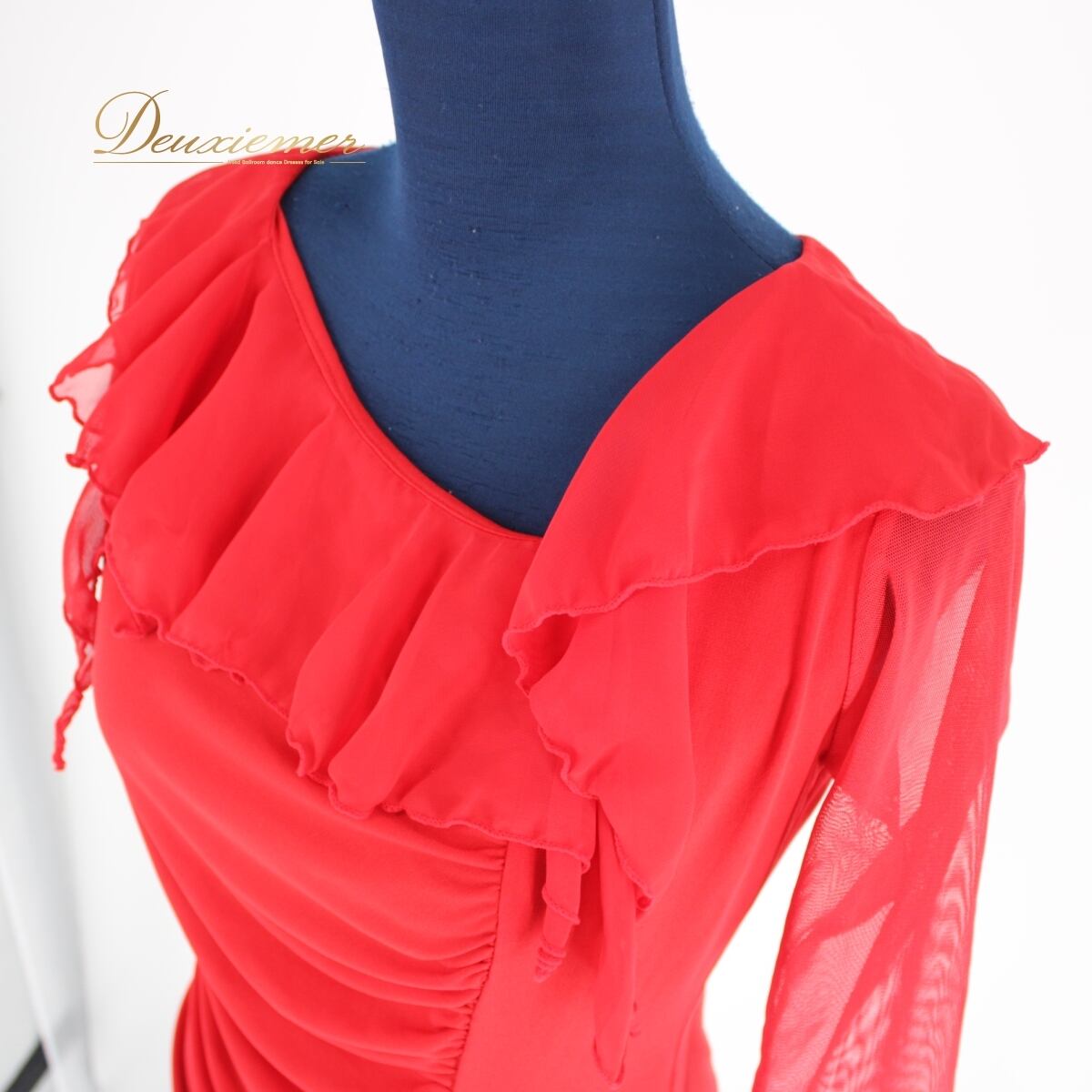 【美品 社交ダンス衣装】トップス レッスン パーティー 赤 レッド 無地 シンプル ドレープ 透け感 レース 派手 目立つ 可愛い