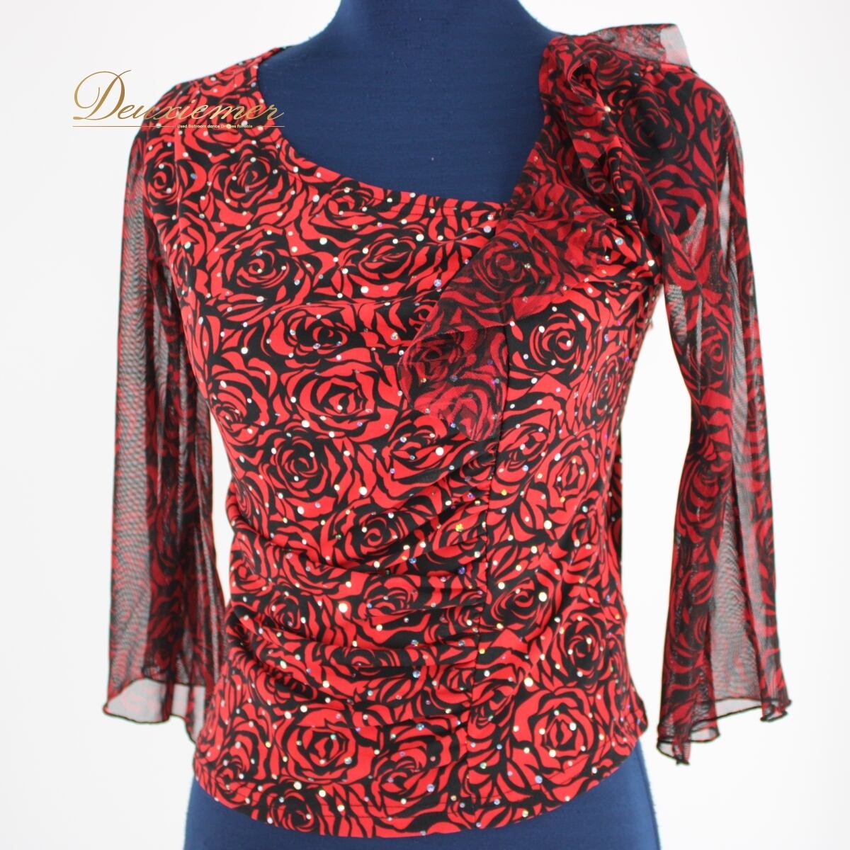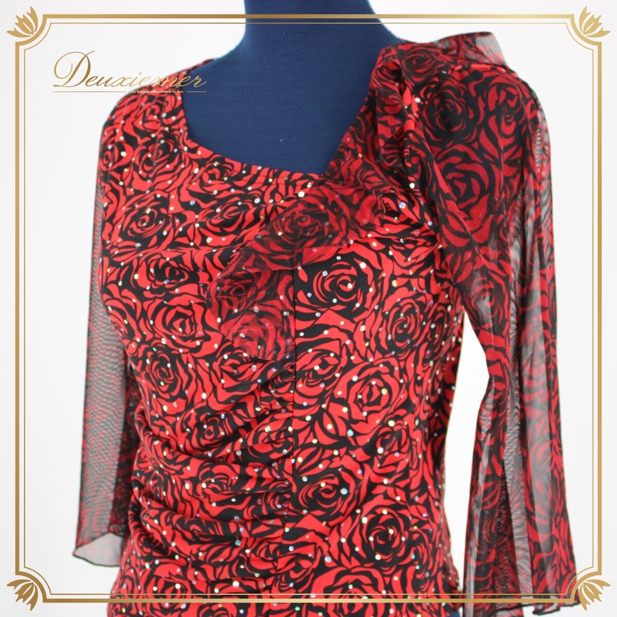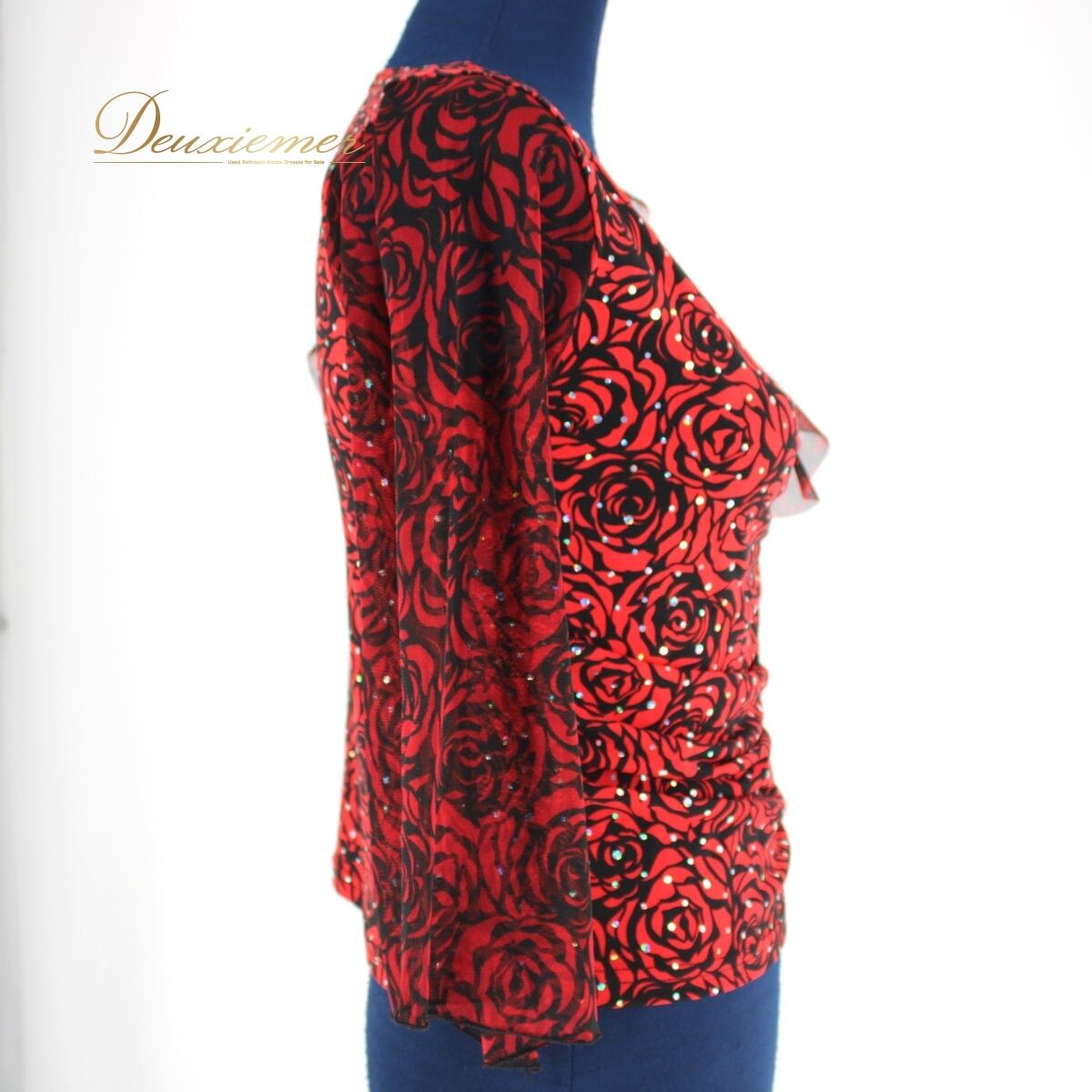 #レッドトップス #ブラックコーデ #ホログラム加工 #社交ダンストップス #華やか衣装 #シックデザイン #演技衣装 #女性用トップス #キラキラ衣装 #練習着コーデ #トップススタイル #ダンス衣装 #ダンスコスチューム #ステージ衣装 #古着 #中古 #ENUTSU