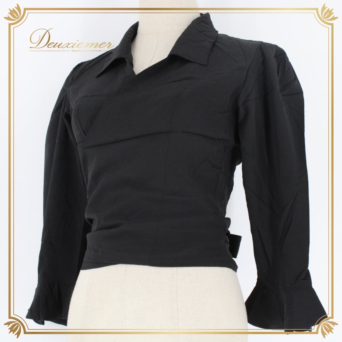 【フラメンコ衣装】ブラック MOLINA モリーナ ブラウス トップス 黒 無地 リボン ダンス 襟 レディース 舞台 発表会 ブラウス トップス スタイリッシュ デザイン 発表会 ダンス リボン