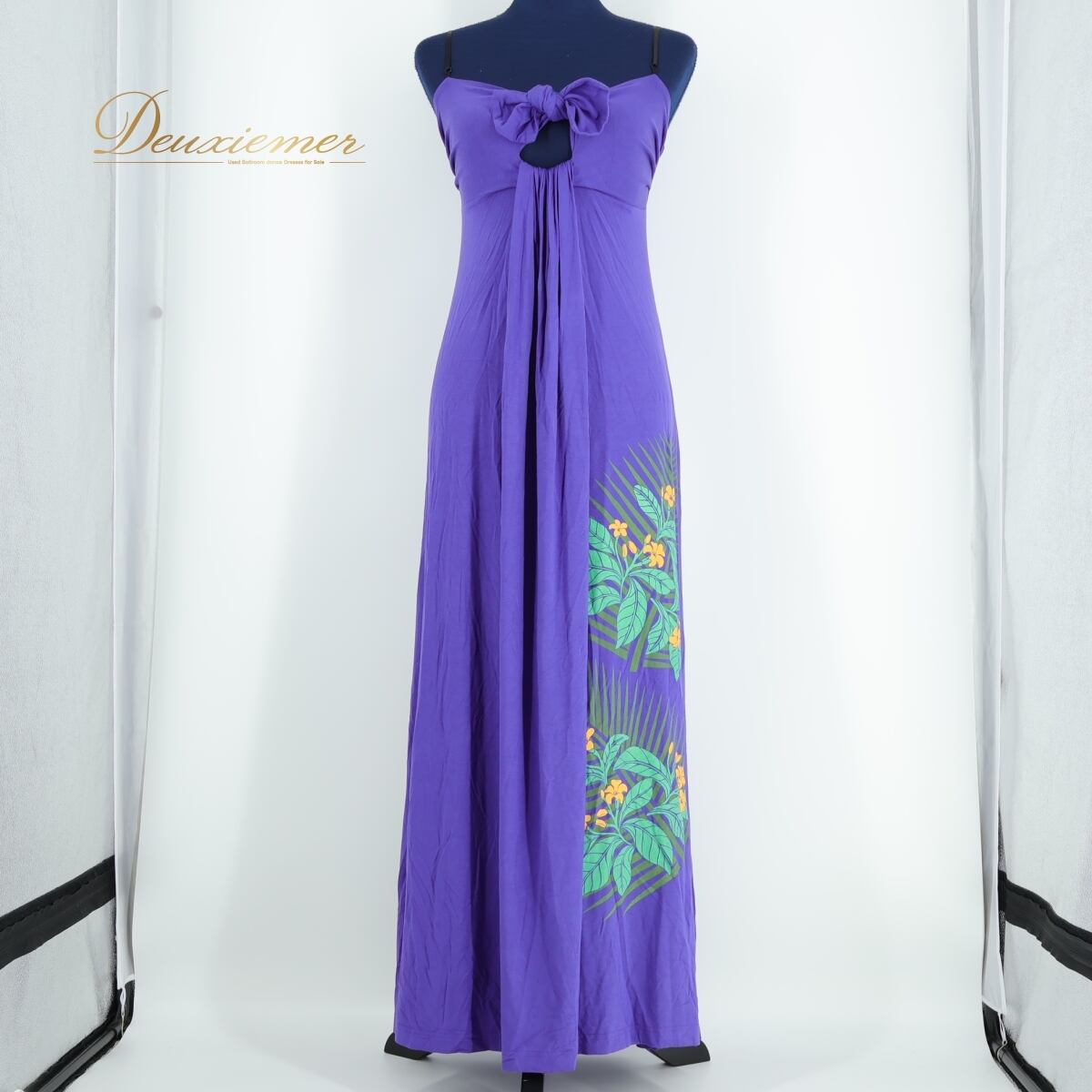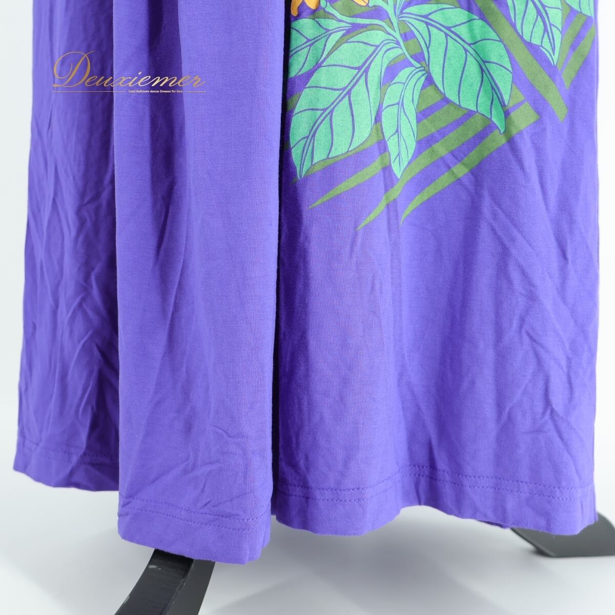 【日本製 フラダンス衣装】パープル MAHALO マハロ ワンピース ドレス 紫 黄 緑 花柄 タヒチアン リボン イエロー グリーン