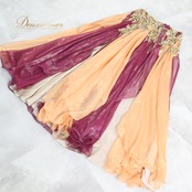 #ベリーダンス #オリエンタル衣装 #ダンス衣装 #エジプト製 #アラブ文化 #コスチューム #パフォーマンス #スカート #トップス #豪華装飾 #ダンスファッション #アンダーストラップ #伸縮性 #ウエストゴム #インナーショーツ #スリット #トルソー #薄オレンジ #赤紫色 #ENUTSU