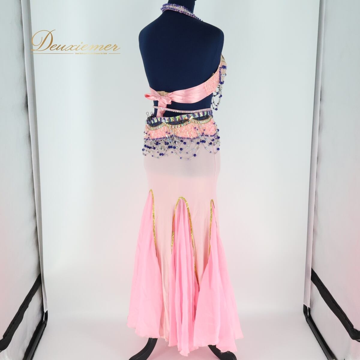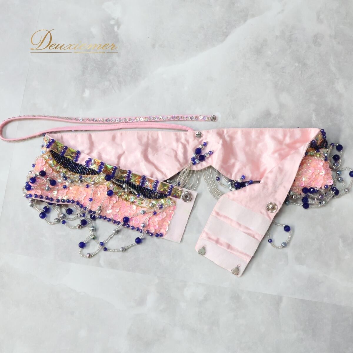 #ベリーダンス #オリエンタル衣装 #ダンス衣装 #ベリーダンス衣装 #パーティ衣装 #ドレス #女性用衣装 #ダンス #アンダーストラップ #スカート #可愛い衣装 #薄ピンク #青 #シルバー #華やか #コスチューム #フリル #マジックテープ #ホック #ENUTSU