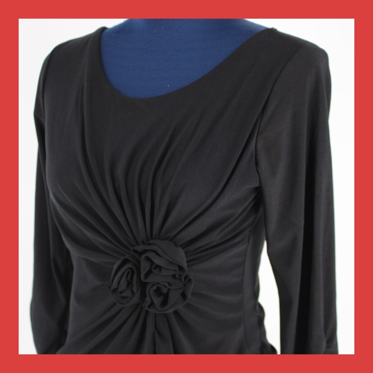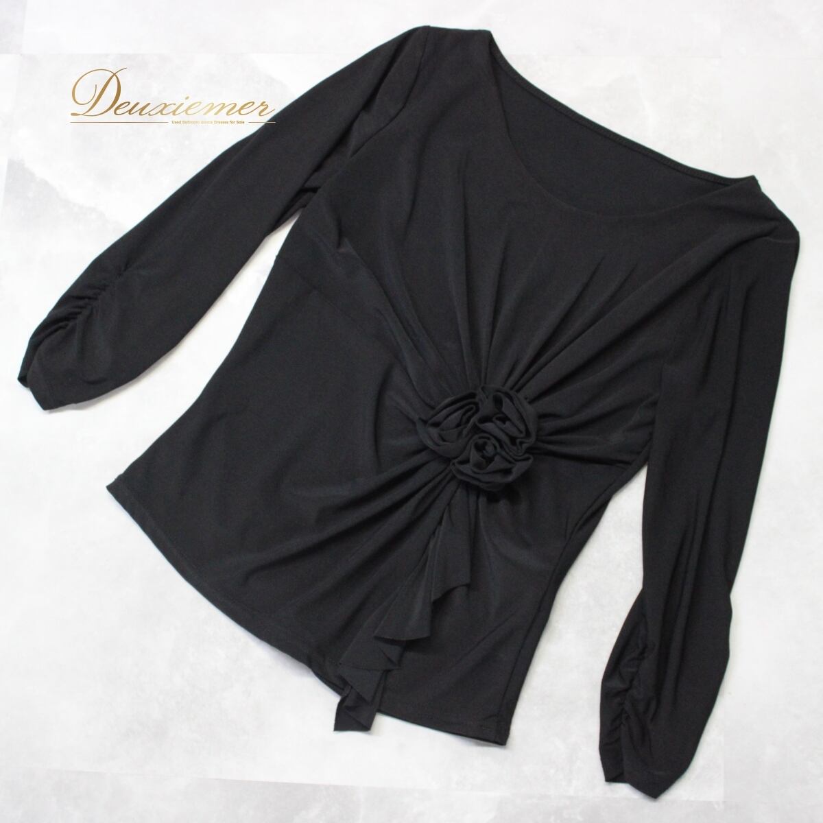【美品 社交ダンス衣装】トップス パーティー レッスン leirena レイリーナ 黒 ブラック 長袖 シンプル 無地
