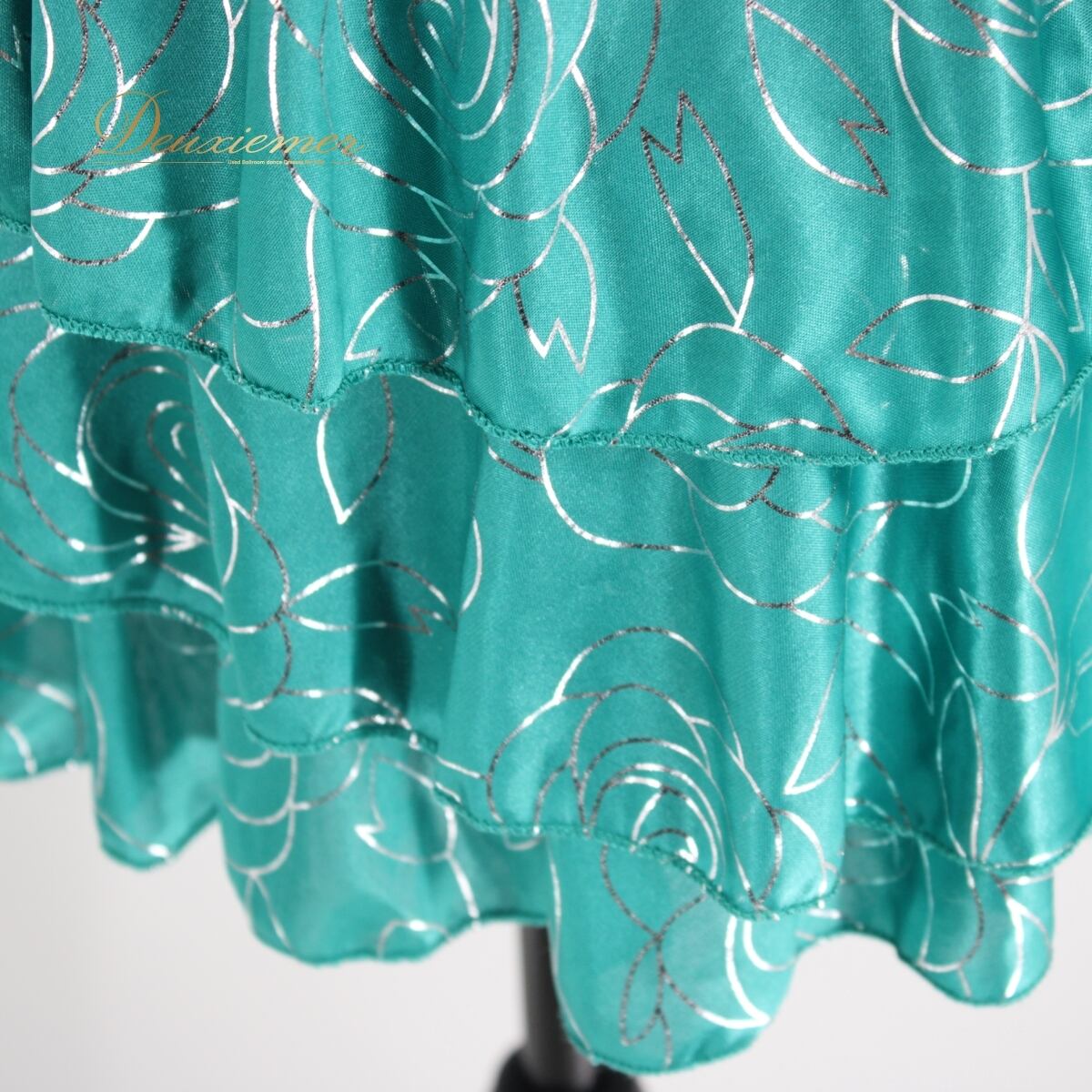 #社交ダンス #ダンス衣装 #トップス #エメラルドグリーン #シルバー花柄 #伸縮性 #レディースファッション #ダンスウェア #おしゃれ #トルソー #コスチューム #パーティー衣装 #ダンススタイル #ファッションアイテム #ダンス女子 #花柄デザイン #女性用衣装 #特別な日 #ダンスコーデ #ENUTSU