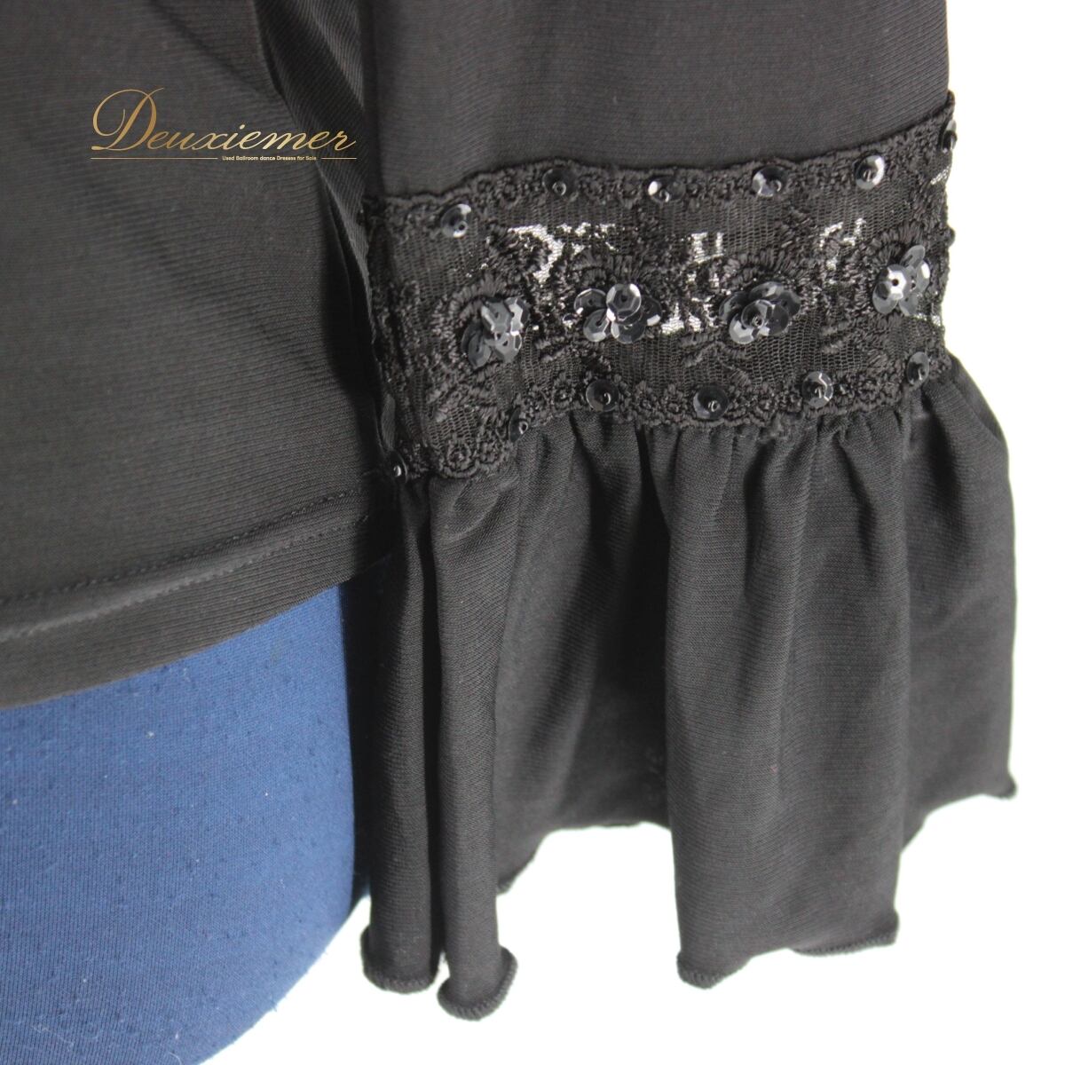 【美品 社交ダンス衣装】トップス パーティー レッスン ICHIOKU イチオク 黒 ブラック スパンコール 長袖 レース