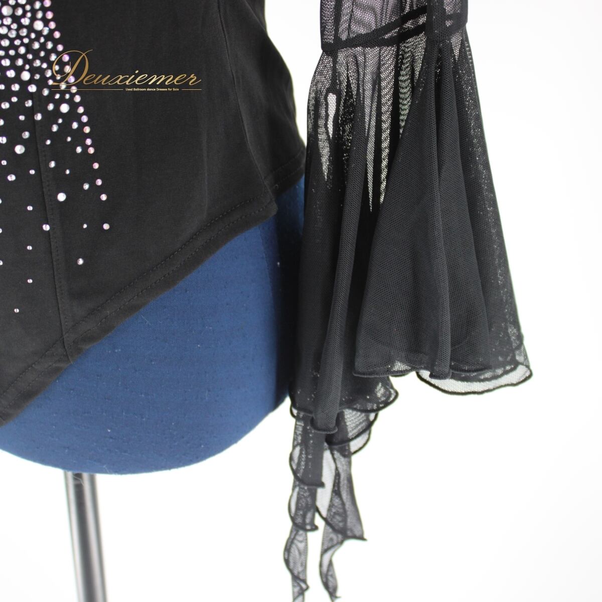 【美品 社交ダンス衣装】トップス パーティー レッスン エル・プラト 黒 ブラック ラインストーン 長袖 レース 派手 透け感
