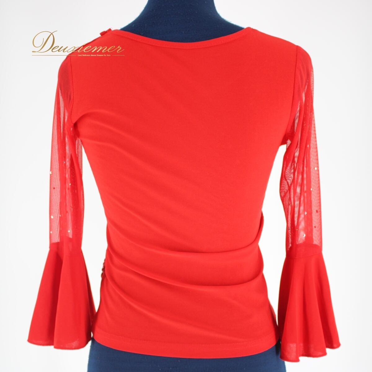 【美品 社交ダンス衣装】トップス パーティー レッスン ICHIOKU イチオク 赤 レッド ラインストーン 派手 スパンコール 長袖