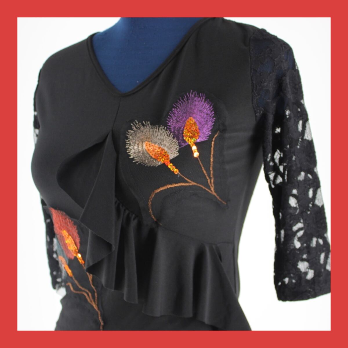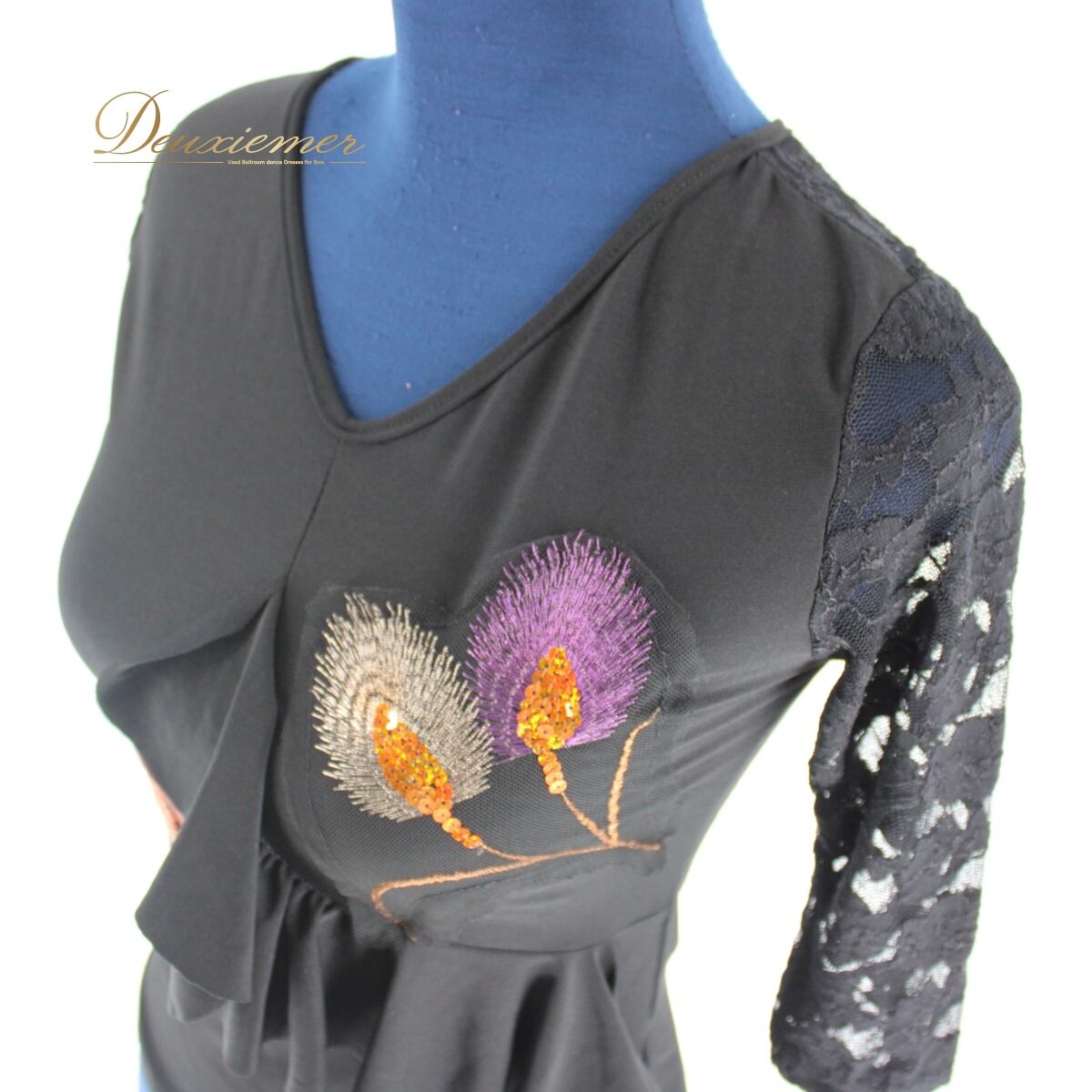 #社交ダンス #ダンス衣装 #トップス #アシンメトリーデザイン #クラシックブラック #女性用トルソー #花柄レース #伸縮性 #ダンスファッション #衣装 #ダンススタイル #シック #ドレスアップ #パーティー #特別な日 #パフォーマンス #おしゃれ #ビジュアル #ファッション #ENUTSU