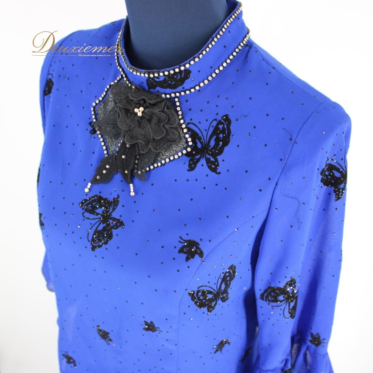 #社交ダンス #ダンス衣装 #ダンスファッション #ブルー #ブラック #フロッキー #蝶々柄 #ラメ #ラインストーン #日本製 #セットアップ #女性用 #トルソー #フォーマル #パーティー #華やか #エレガント #コスチューム #パフォーマンス #ダンスイベント #ENUTSU