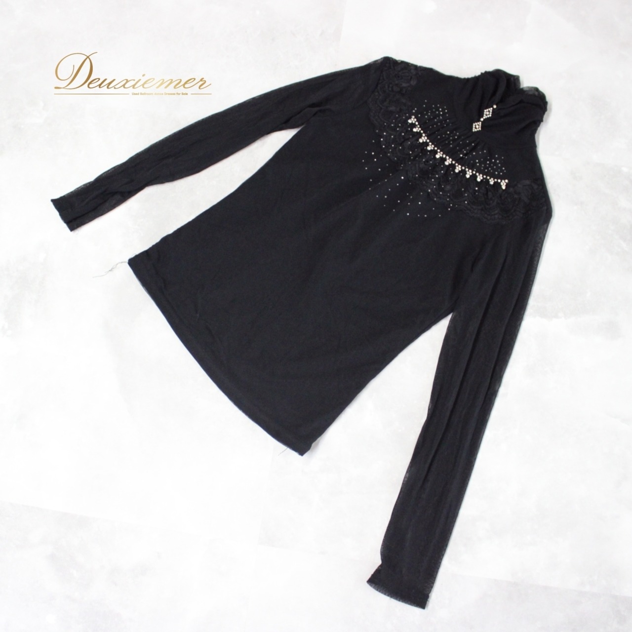 【美品 社交ダンス衣装】 ブラック系 トップス レッスン パーティー ICHIOKU イチオク ラインストーン 長袖 黒 シンプル