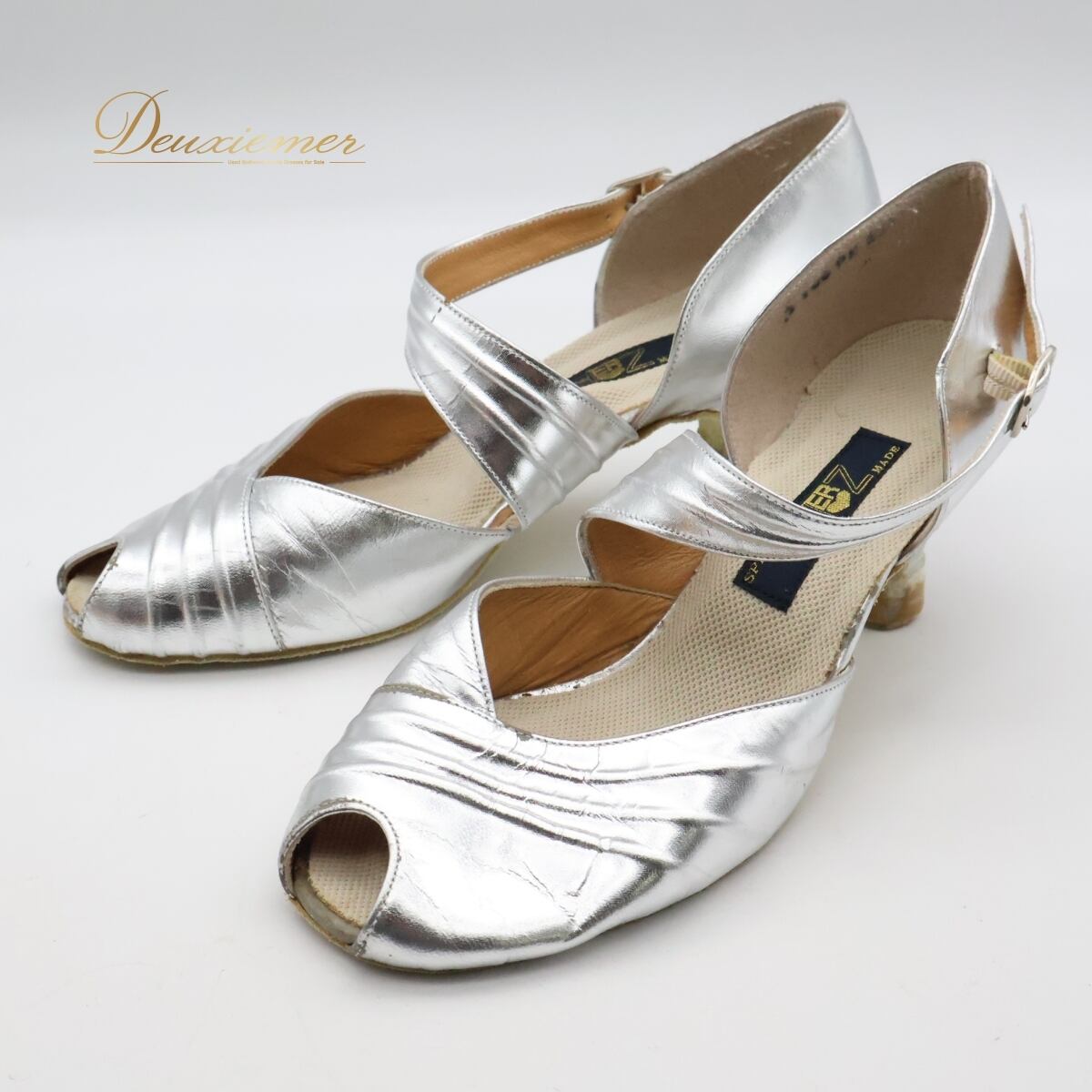 【社交ダンス用衣装】23 1/2CM SPECIAL HERZ MADE シルバー系 光沢 艶 ダンス シューズ レディース用 靴 ヒール オシャレ シューズ 光沢 シルバーシューズ ダンスシューズ ヒール靴 社交ダンス レディース用靴 靴ヒール