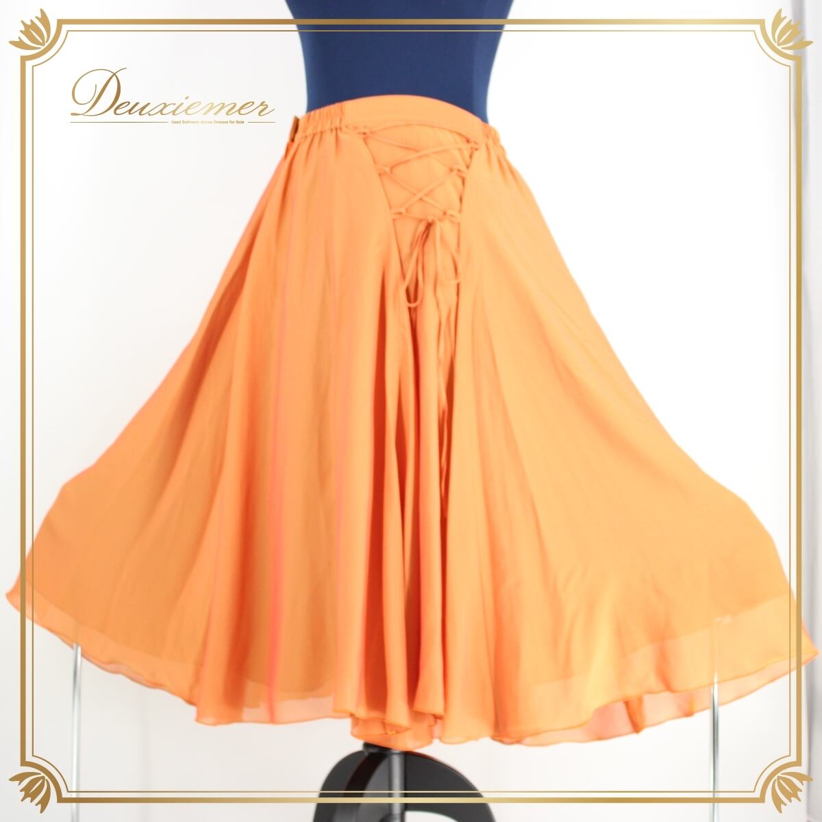 #社交ダンス #ダンス衣装 #スカート #Lサイズ #ファスナー仕様 #日本製 #オレンジ #編み上げデザイン #シンプルシルエット #鮮やかカラー #舞台衣装 #ダンススカート #ファッション #女性用トルソー #ダンスパフォーマンス #社交ダンス衣装 #踊る #軽やか #伸縮性 #ENUTSU