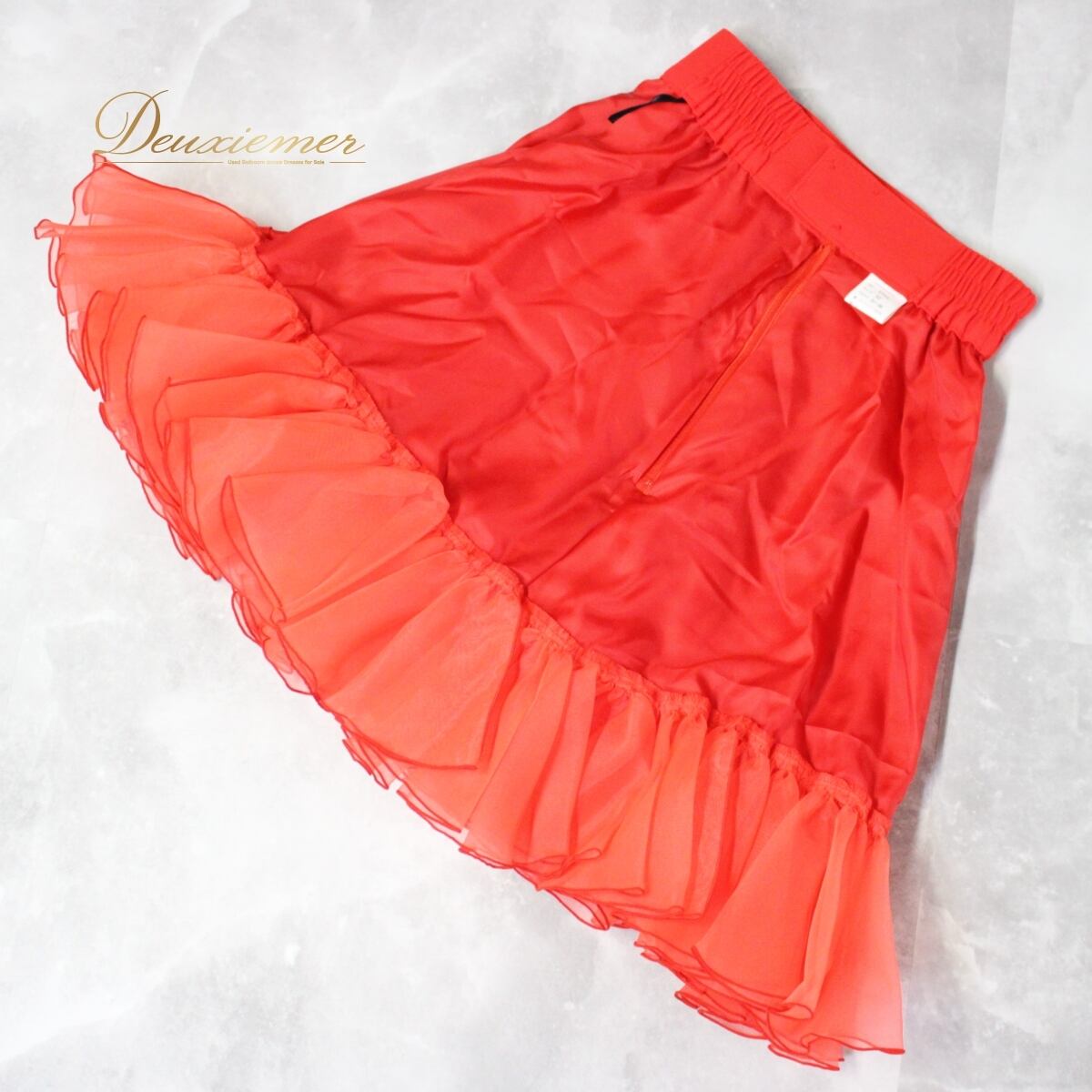 【美品タグ付き 日本製社交ダンス衣装】 レッド系 赤 スカート レッスン パーティー ラインストーン 無地 派手 シンプル