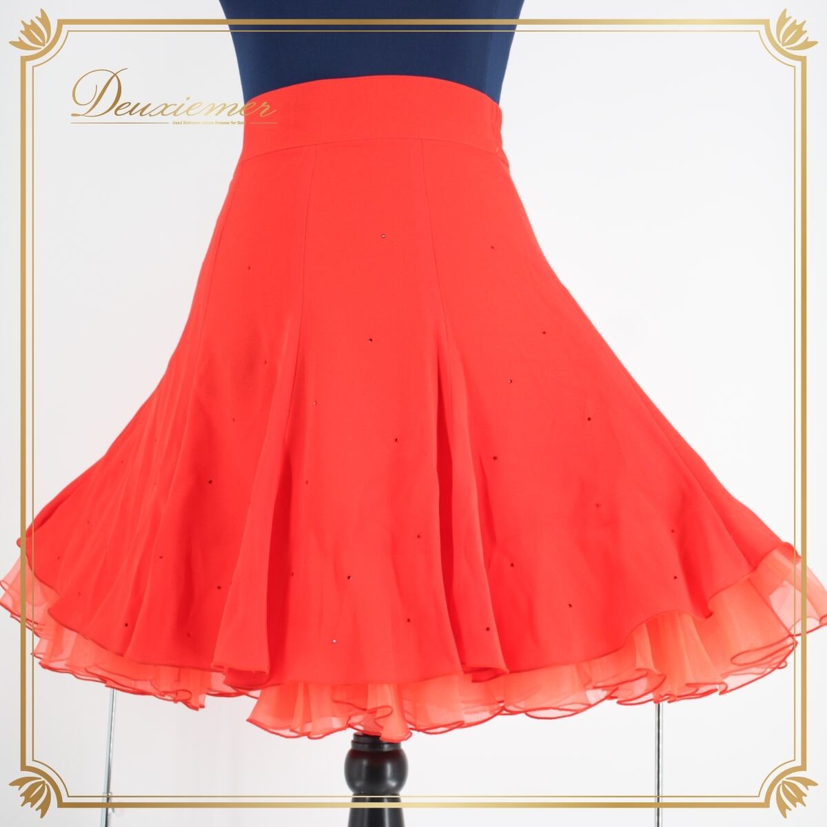 #社交ダンス #ダンス衣装 #スカート #Mサイズ #日本製 #赤色 #二重スカート #ラインストーン #おしゃれ #ファスナー #伸縮性 #ダンスウェア #女性用トルソー #衣装 #シンプルデザイン #トルソー #ダンススタジオ #パフォーマンス #イベント #ENUTSU