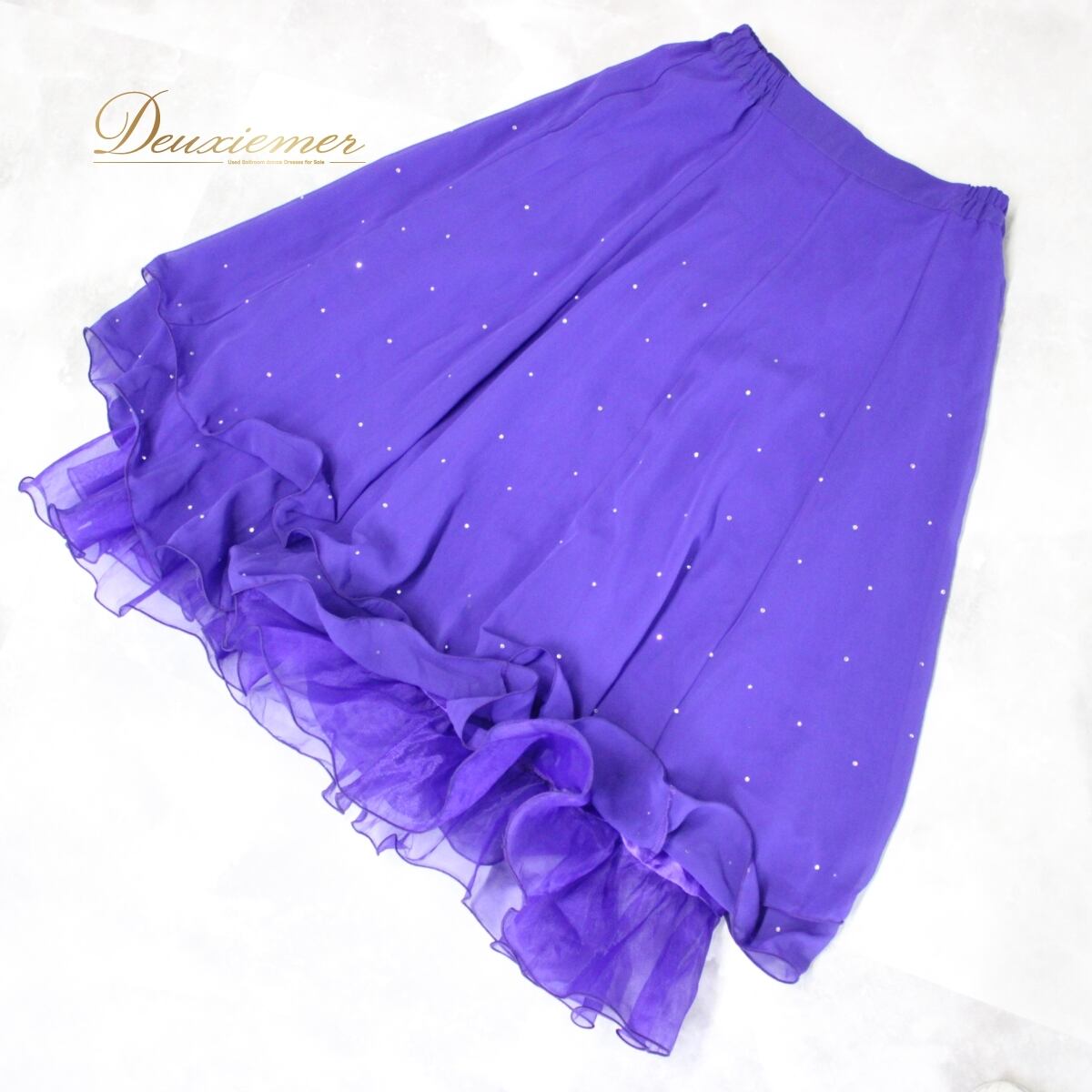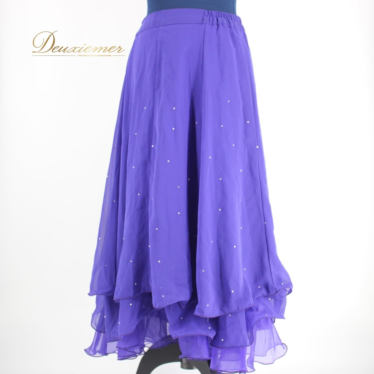 【美品 社交ダンス衣装】 パープル系 紫 スカート レッスン パーティー 無地 シンプル ラインストーン 派手 上品 かわいい