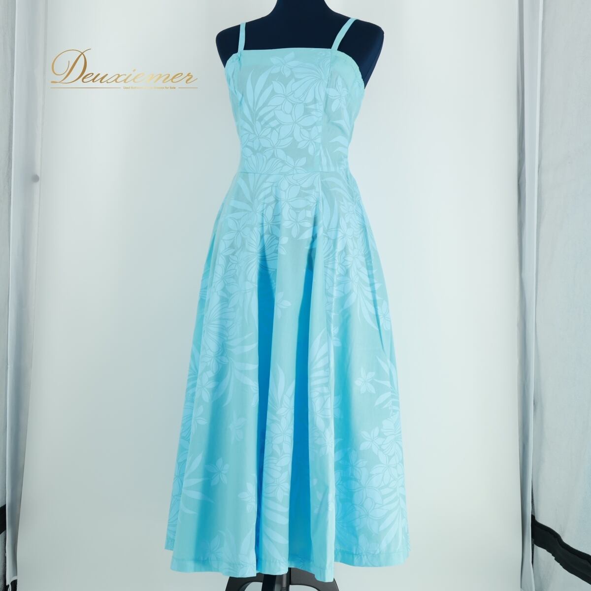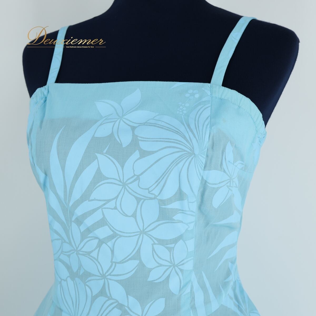 #フラダンス #衣装 #ドレス #ワンピース #ハイビスカス #プルメリア #ハワイアン #キャミソール #水色 #女性用 #ファッション #カジュアル #夏服 #ビーチスタイル #パーティー #ビニール屋外 #トルソー #伸縮性なし #背面ファスナー #ENUTSU