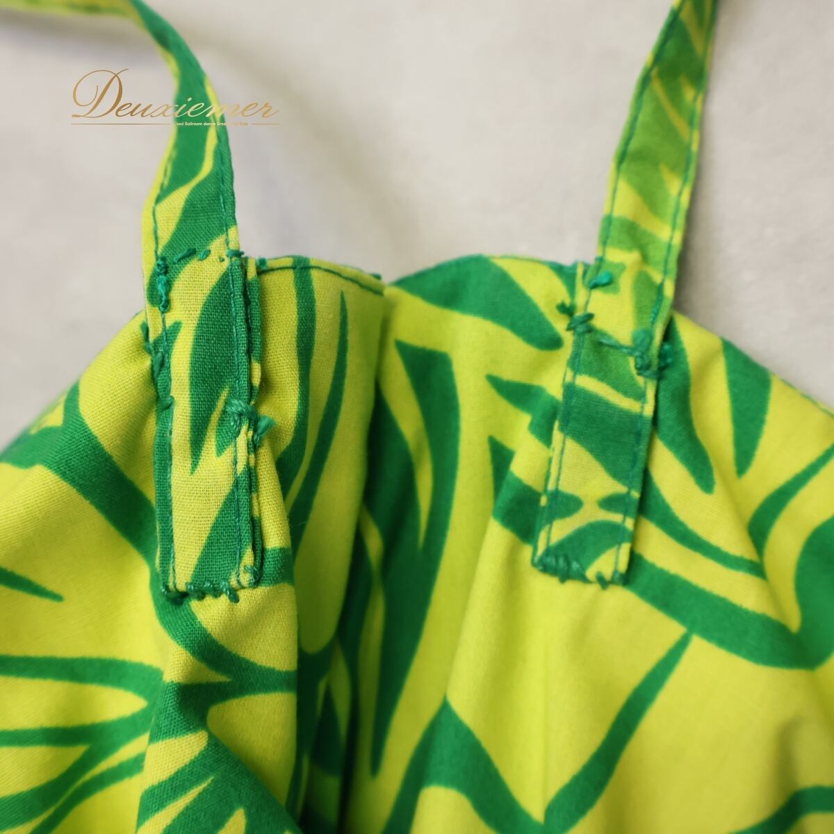 【ハワイ製 フラダンス衣装】グリーン系 CC Fashions ワンピース ドレス 緑 黄 グラデーション 花 フリル キャミソール 華やか