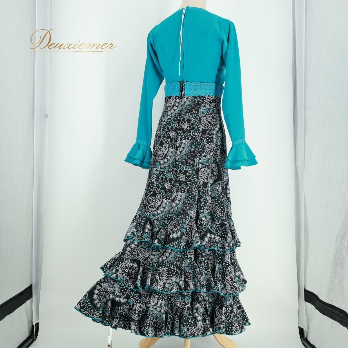 【フラメンコ衣装】グリーン系 LOPEZ DE SANTOS ロペスデサントス 上下セット ツーピース セットアップ 花 ファルダ スカート