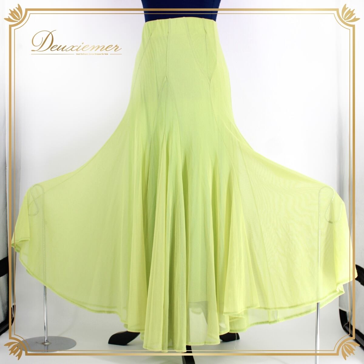 【美品 社交ダンス衣装】 グリーン系 黄緑 スカート レッスン パーティー 無地 シンプル 丈長め 透け感 キラキラ ロング