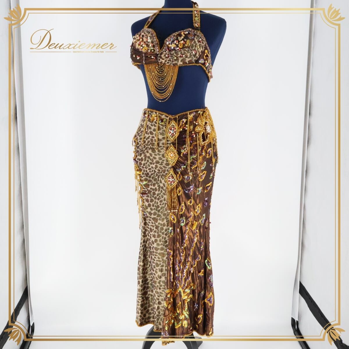 #ベリーダンス #オリエンタル衣装 #ダンス衣装 #衣装セット #トップス #スカート #アンダーストラップ #ゴム仕様 #スリットスカート #おしゃれ #茶色ゴールド #アクセサリー #女性用トルソー #ダンスファッション #パフォーマンス衣装 #祭り衣装 #イベントコスチューム #ダンスパフォーマンス #エレガント #フリースタイル #ENUTSU