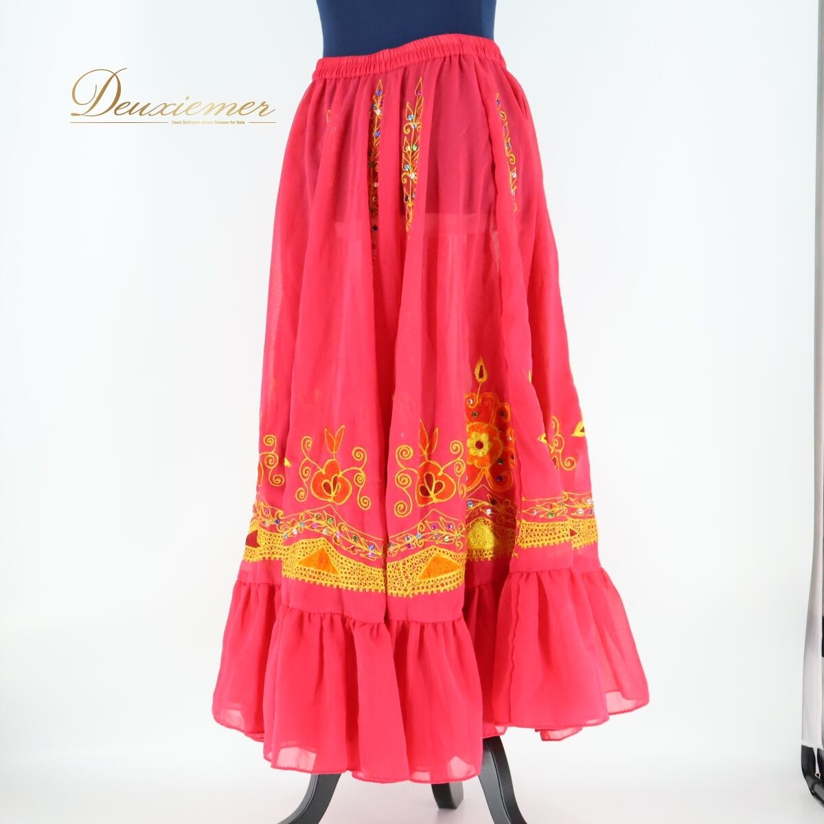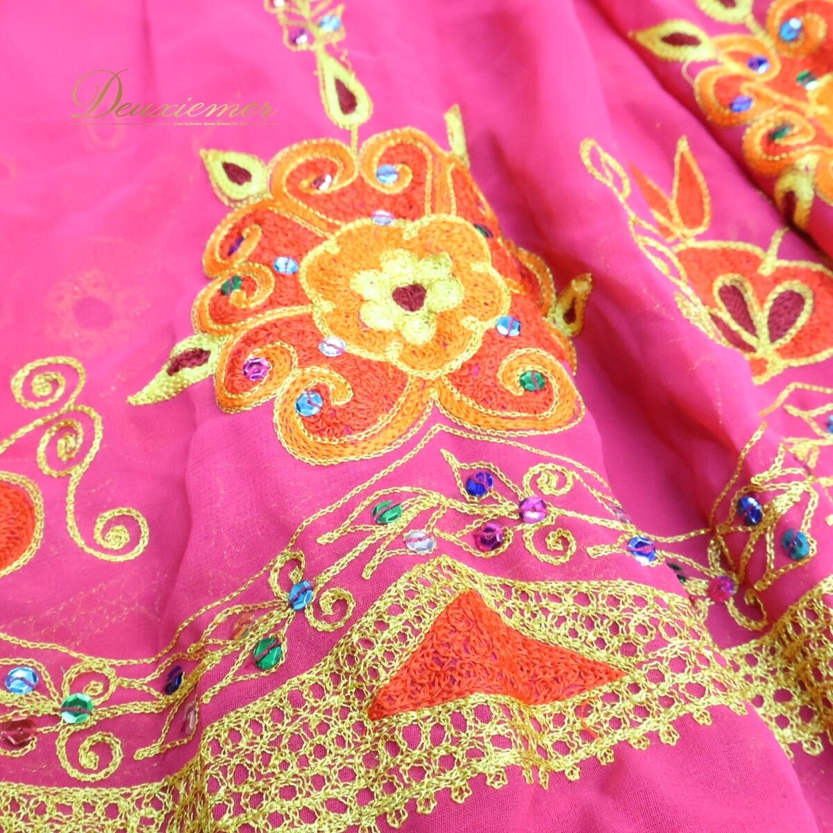 【インド製 ベリーダンス用衣装】 ピンク系 ジプシースカート ロング ショッキングピンク 黄色 装飾 ラメ フリル 華やか 鮮やか かわいい ジプシースカート ピンク ショッキングピンク ロングスカート かわいい 装飾付き フリル おしゃれ ダンス衣装