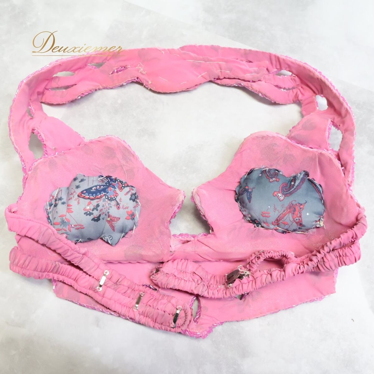 【ベリーダンス用 オリエンタル衣装】ピンク系 ラインストーン ビーズ パール 装飾 ラメ レース フリル 豪華 かわいい 女性らしい 装飾品 おしゃれ セットアップ ダンス衣装 華やか 鮮やか フリルスカート コスチューム スリット