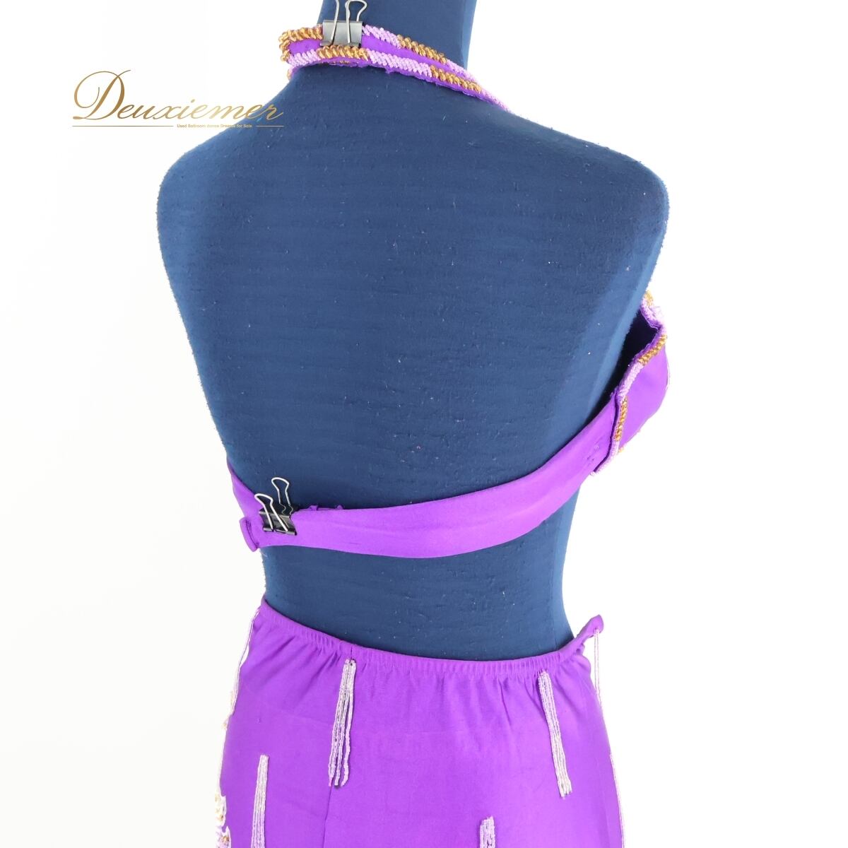 【ベリーダンス用 オリエンタル衣装】パープル系 ラインストーン ビーズ 装飾 紫 模様 花柄 サテン生地 鮮やか 華やか オシャレ ベリーダンス 衣装 ドレス コスチューム ダンス おしゃれ ビーズ装飾