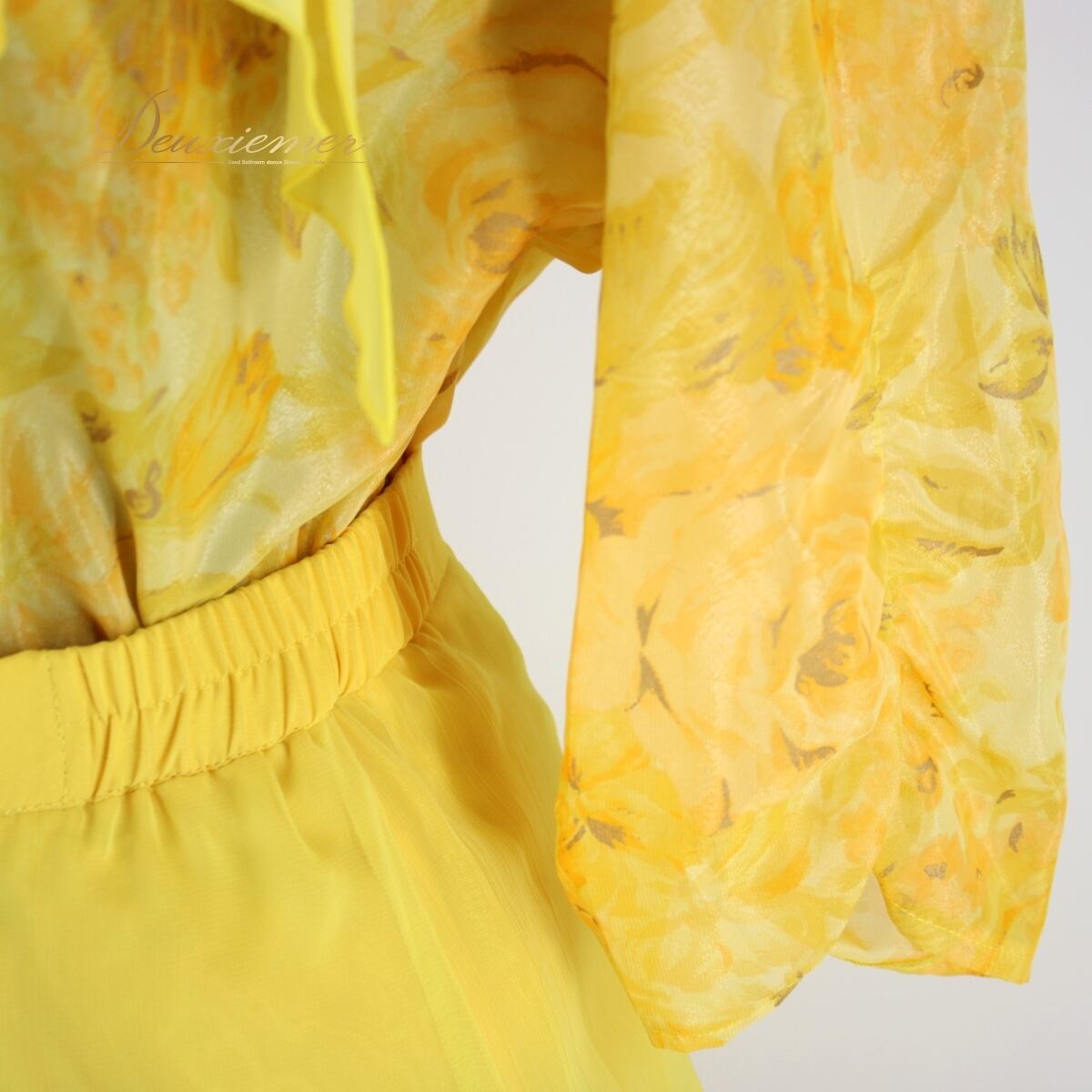 #社交ダンス #ダンス衣装 #ダンススタイル #ダンスコスチューム #レオタード #スカート #ファスナー #日本製 #鮮やかイエロー #二重スカート #花柄デザイン #トルソー #ファッション #衣装セット #ダンスファッション #サイズ13号 #サイズL #ダンス愛好家 #社交ダンス衣装セット #ダンス用品 #ENUTSU