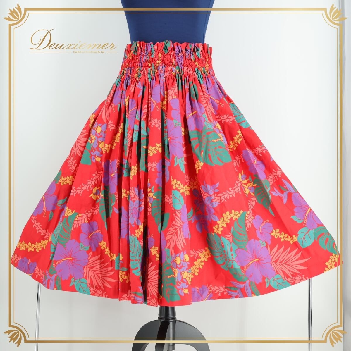 【フラダンス衣装】レッド系 パウスカート 赤 紫 緑 黄 プルメリア柄 花柄 鮮やか パープル系 グリーン系 イエロー系 フラダンス 衣装 スカート 花柄 スカート 鮮やか カラフル パウスカート ハワイアン ダンスウェア プルメリア模様 ウエストゴム