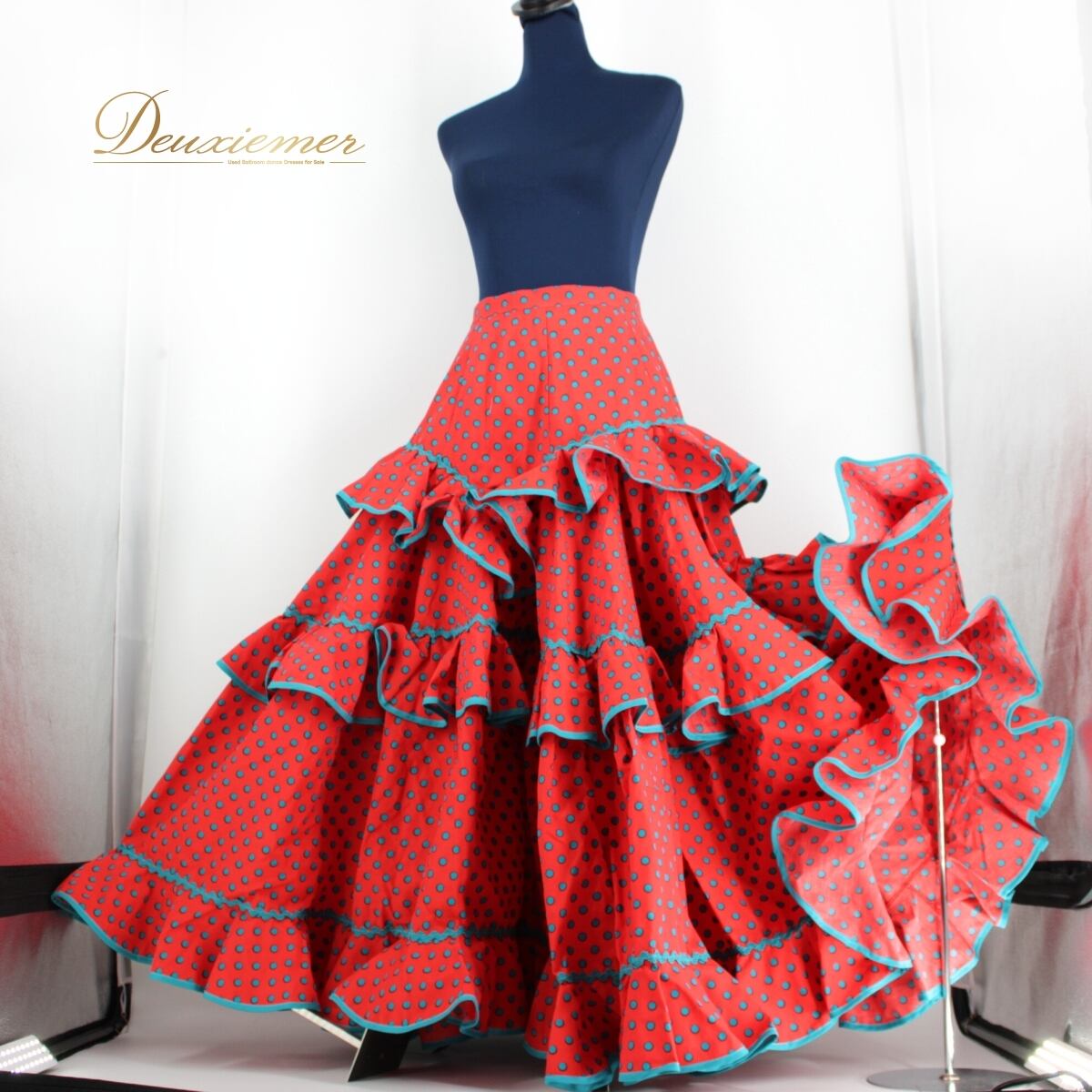 【美品 フラメンコ衣装】レッド系 ブルー系 赤 青 水色 ファルダ スカート レッスン ステージ 水玉 ドット バイカラー 派手 ドレス ダンス 衣装 ステージ衣装 フラメンコスカート ボリューム スカートレッスン カラフル トレンド ファッション レトロ