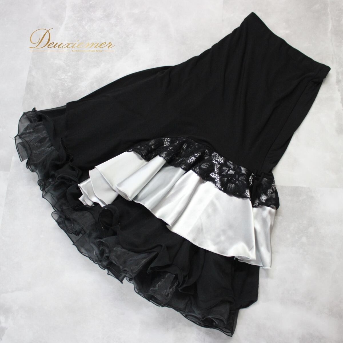 【美品 社交ダンス衣装】ブラック系 黒 シルバー系 スカート レッスン パーティー Roger 花柄 レース 無地 シンプル アシメ 社交ダンス スカート Mサイズ Lサイズ ダンス衣装 アシンメトリー ガーリー フェミニン お洒落 レディース