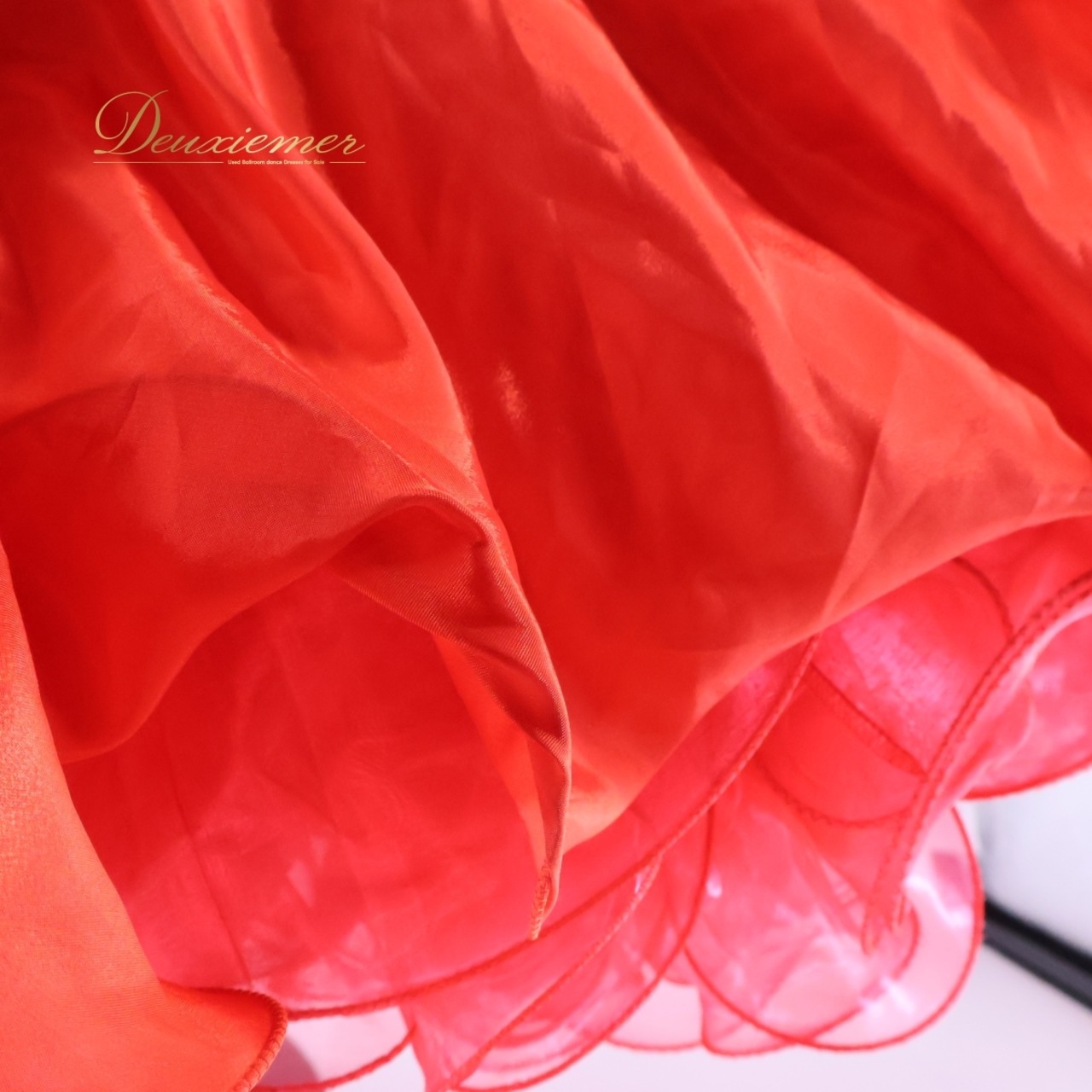 【社交ダンス衣装】レッド系 ワンピース ドレス 赤 無地 フリル フロート レース 光沢 ボリューム デモ 競技用 ダンス パーティ ダンス衣装 フルスカート ロングドレス フェスティバル 特別な日 競技 ステージ用 プレゼント レディース 限定 デザイン うっとりする 美しい 高級感 シンプル ファッション おしゃれ カジュアル