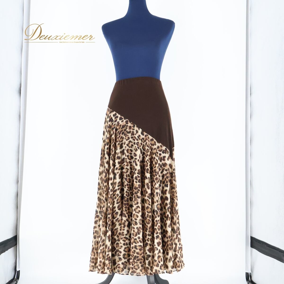 【社交ダンス衣装】ブラウン系 create-sun クリエイトサン スカート ヒョウ柄 豹 レッスン 茶色 アニマル柄 練習着 伸縮 伸びる レディース ヒョウ柄スカート 社交ダンス練習着 フェミニン 柔らか素材 エレガント 伸びるスカート おしゃれ ダンス用スカート レディースファッション 練習用レッスンウェア ハイウエスト スポーティー動きやすい スカートスタイル アクティブウエア 体型カバー カジュアルコーデ