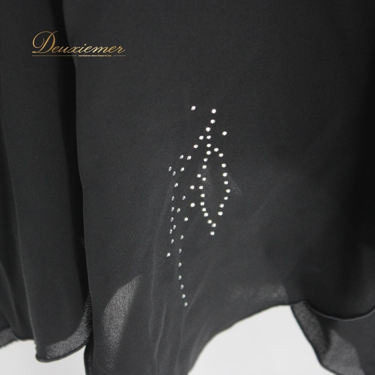 【美品 日本製社交ダンス衣装】 ブラック系 黒 スカート レッスン パーティー 無地 シンプル ラインストーン 透け感 上品 社交ダンス カジュアル ダンス スカート Lサイズ 上品なデザイン シンプルスタイル 洗練された ブラック おしゃれな