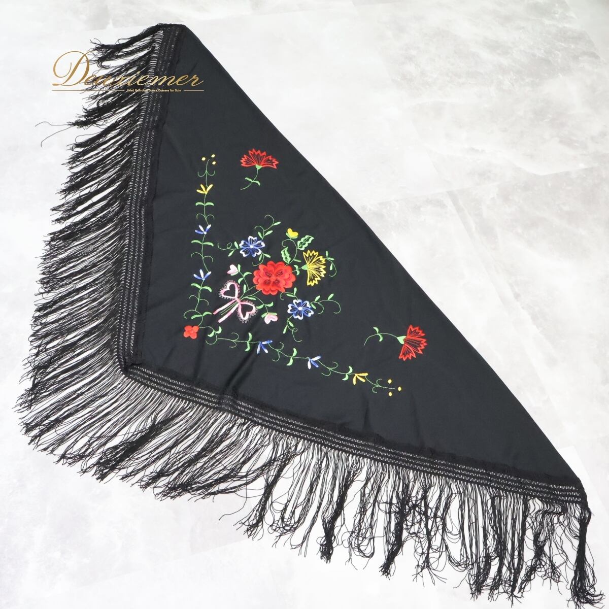 フラメンコ 衣装 シージョ ピキージョ 黒 花柄 刺繍 トライアングル フレコ ダンス ブラック系 三角形 小物 装飾 舞台 発表会 イベント ロング フラメンコシージョ お洒落 アイテム フェスティバル パーティー ダンス衣装