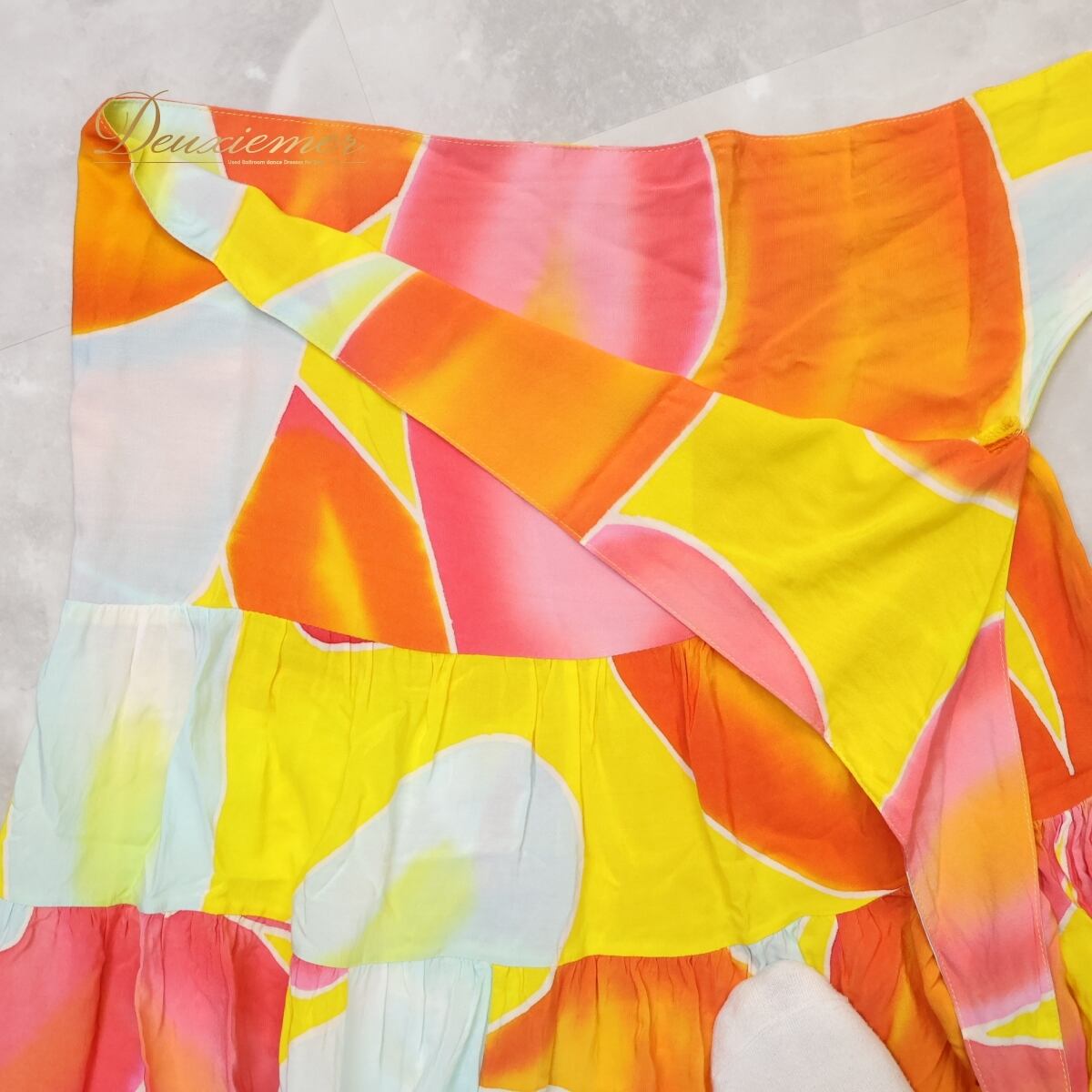 #フラダンス #衣装 #スカート #ダンス衣装 #フラダンス衣装 #アレミティ #OrangeYellowPink #ポップカラー #柔らかい生地 #ウエスト紐 #女性用トルソー #総丈84cm #ウエスト44cm #Mサイズ #ダンススタイル #フラダンススカート #カラフル #明るい色合い #アロハ #ハワイアン #ENUTSU