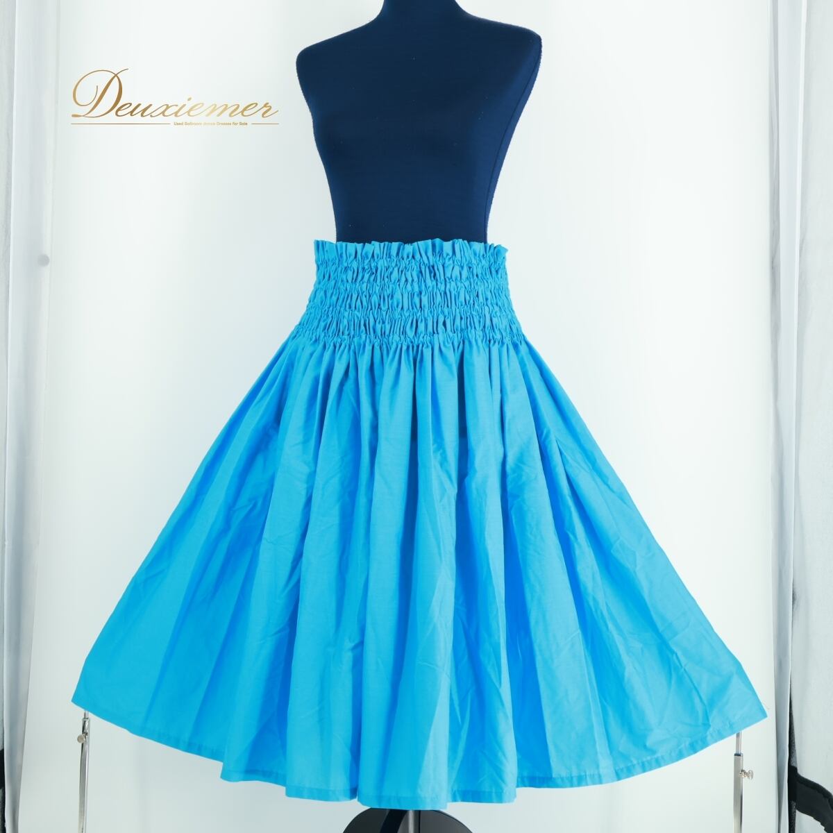 フラダンス 衣装 パウスカート ブルー系 フラ ダンス 水色 ハワイアン アロハ 無地 シンプル シングル 爽やか 明るい ふんわり ゴム レッスン 練習