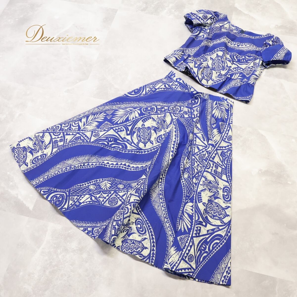 #フラダンス #フラダンス衣装 #ハワイアンプリント #ツーピース #上下セット #セットアップ #ダンス衣装 #衣装セット #ブルー #クリーム #軽い生地 #動きやすい #女性用トルソー #ファッション #夏祭り #ハワイ #ビーチ #ダンス #衣装 #ENUTSU