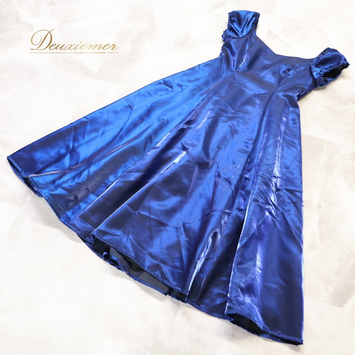 フラダンス 衣装 ワンピース ドレス ブルー系 フラ ダンス サテン 光沢 ハワイアン アロハ 無地 シンプル 軽い 上品 青 落ち着いた キラキラ