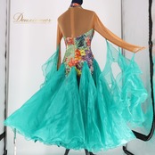 #社交ダンス #ダンス衣装 #ワンピース #ドレス #ダンスドレス #青緑 #スカート #広がるスカート #ファッション #レオタード #ウエスト #胸パッド #伸縮性 #お洒落 #トルソー #女性用 #Mサイズ #特別な日の服 #ダンスステージ #ENUTSU
