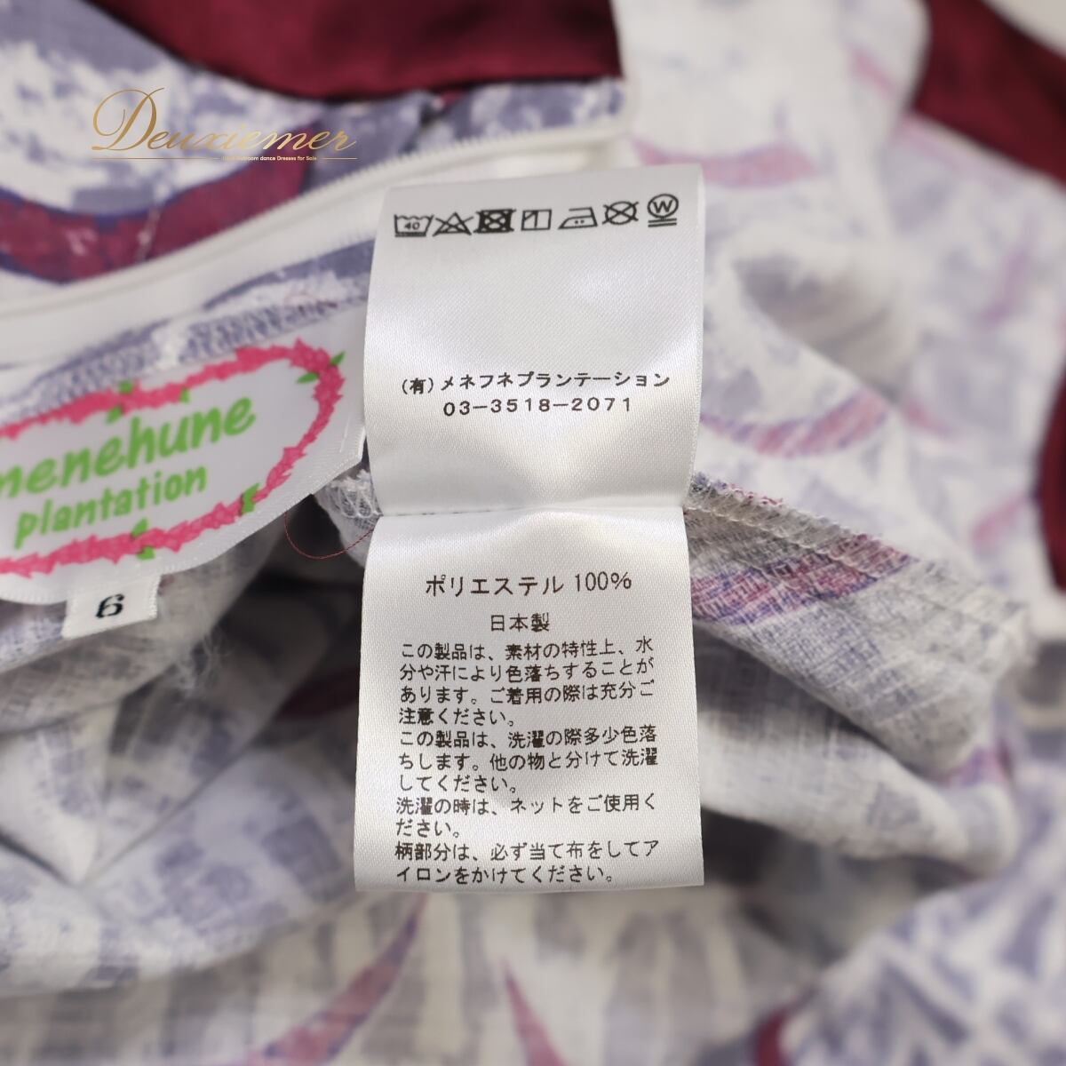 フラダンス 衣装 ワンピース ドレス ホワイト系 フラ ダンス メネフネプランテーション 白 紫 ハワイアン アロハ 日本製 七分袖 MENEHUNE PLANTETION ハワイアンプリント パープル系 ゆったり 大きめ