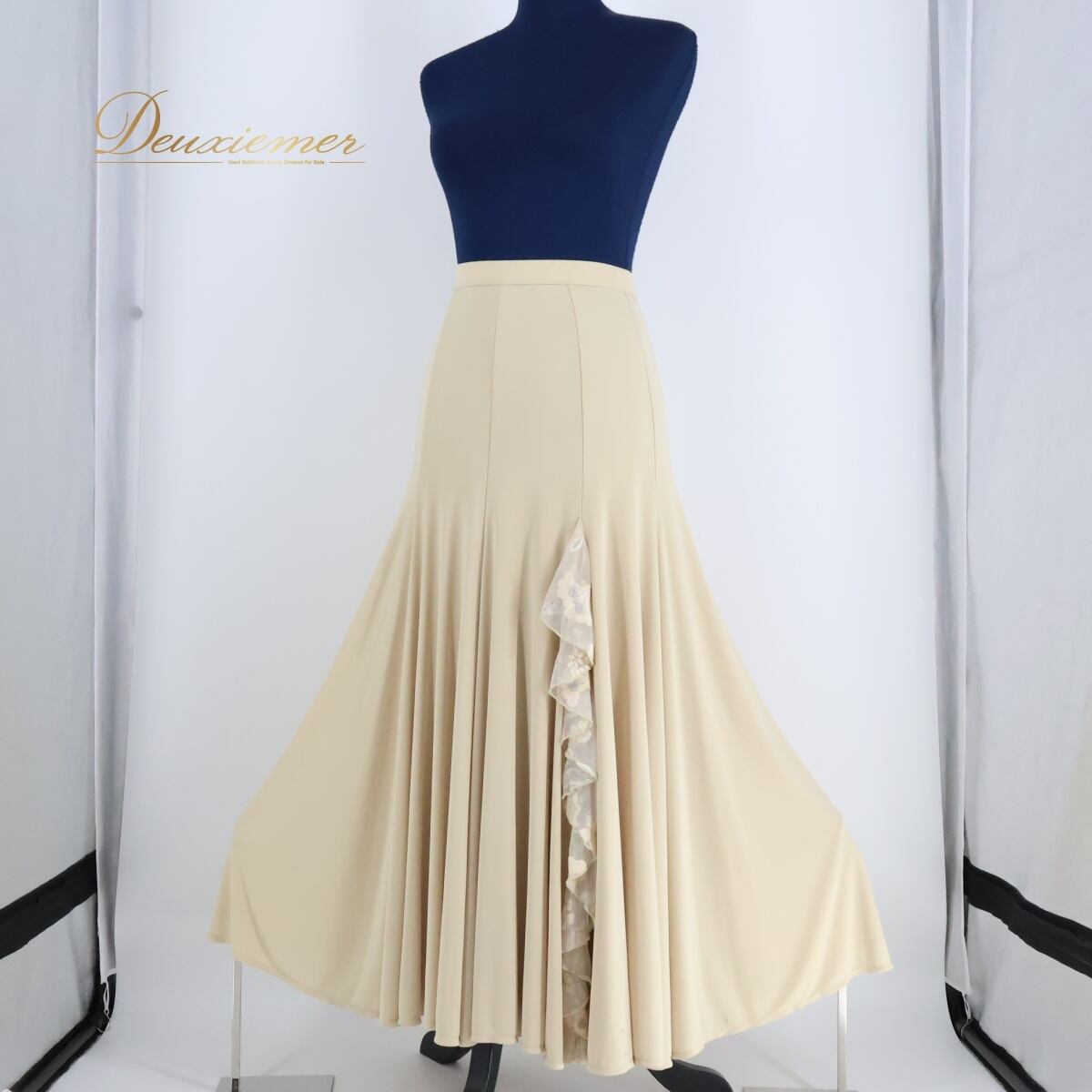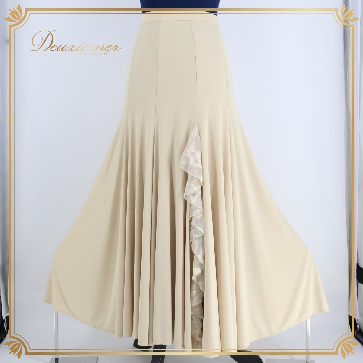 社交ダンス 衣装 スカート タカダンス TAKADANCE ベージュ系 M レッスン 練習着 日本製 クリーム色 フリル 花柄 レース イベント 舞台 伸縮性あり ファスナー仕様 ホック ボタン オシャレ ダンスウェア