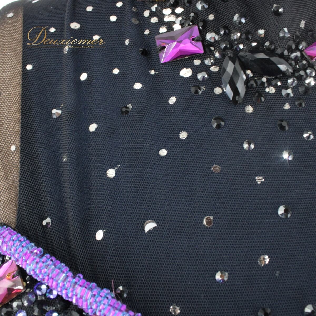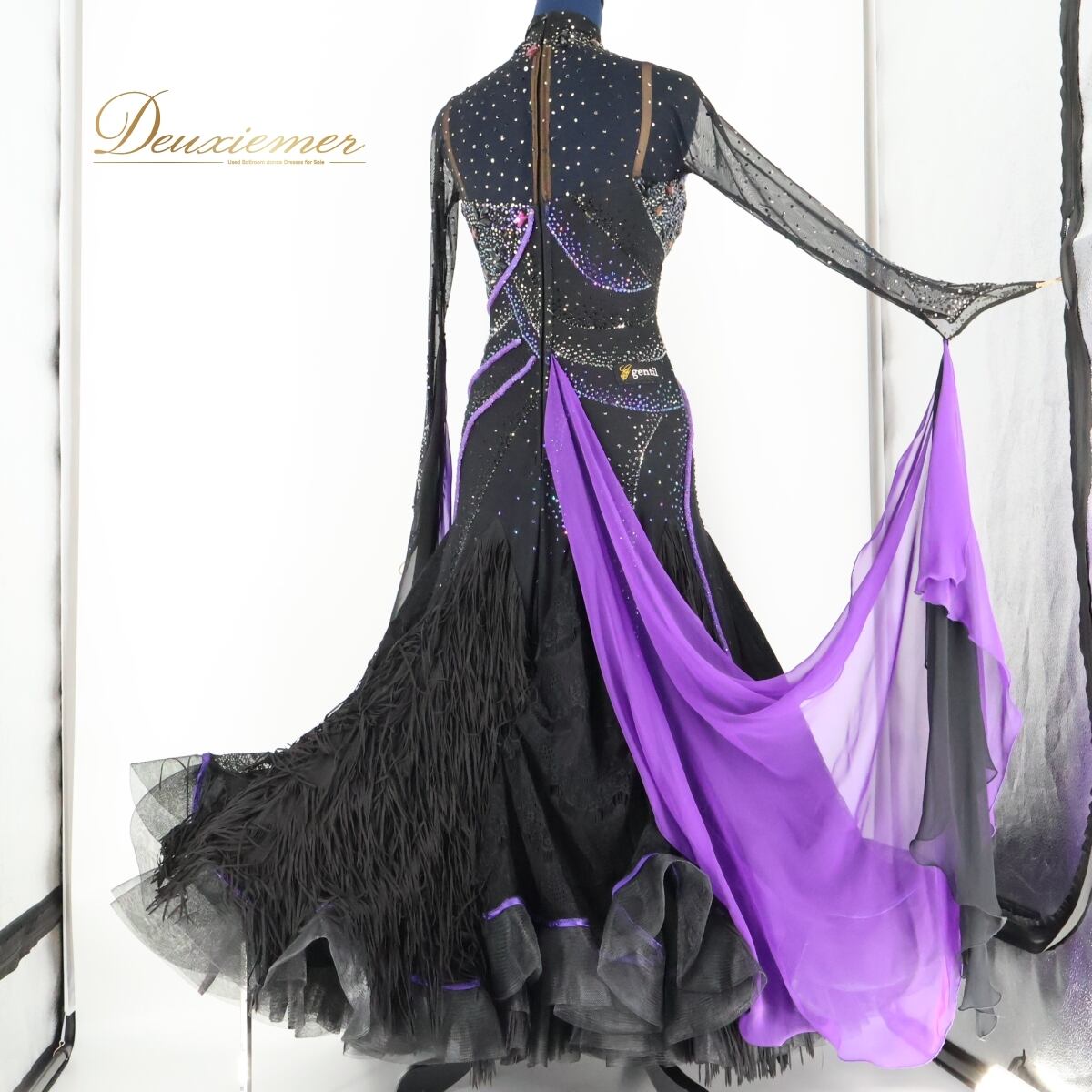 社交ダンス 衣装 ジャンティ スタンダード スタンダードドレス ワンピース フロート gentil ブラック系 黒 紫 デモ 競技 競技用 ダンス パープル系 パーティ 発表会 スカート voluminous フォーマル 派手 伸縮性 Mサイズ おしゃれ 華やか 着やすい 演出 イベント お出かけ サテン エレガント 競技会 レディース