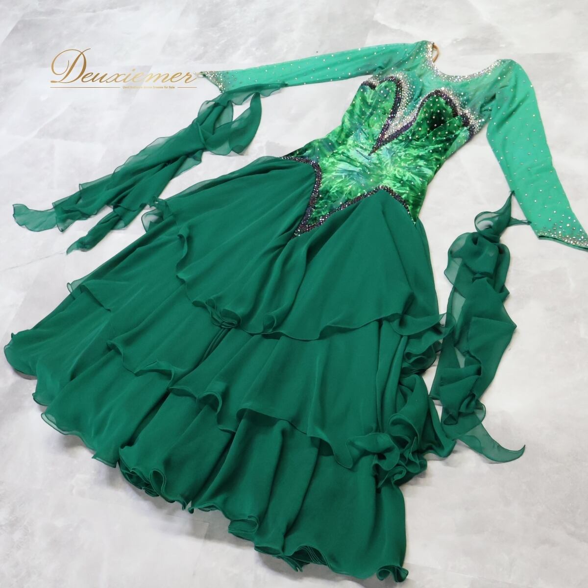 #社交ダンス #ダンス衣装 #ワンピース #ドレス #ダンスドレス #ファッション #衣装 #緑色 #スカート #お洒落 #ふんわり #トルソー #女性用 #パーティー #パフォーマンス #ボディライン #エレガント #オシャレ #ダンスイベント #ENUTSU