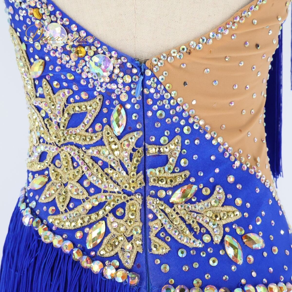 社交ダンス 衣装 ラテン ドレス ラテンドレス ワンピース ブルー系 フリンジ 青 デモ 競技 ダンス クロッチ 長袖 豪華 フリンジ ドレス ルンバ サルサ 舞踏会 豪華なデザイン 高級感 柔らかい 動きやすい 人気 ダンスイベント ステージ衣装 レディース 青色 セクシー 競技用衣装 購入 おしゃれ 体型カバー