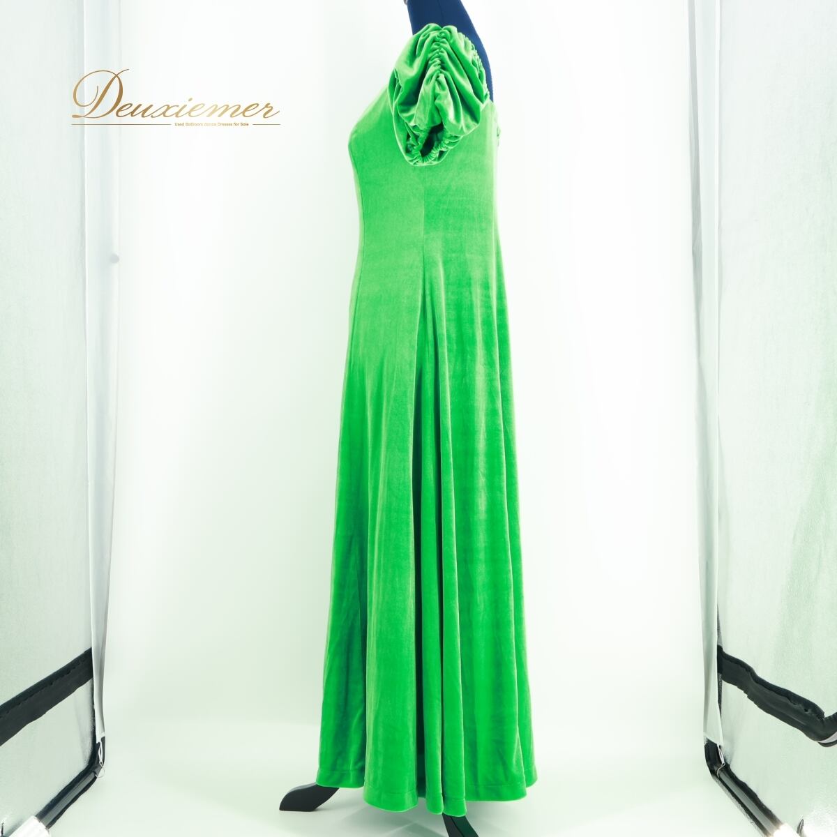 フラダンス 衣装 ワンピース ドレス グリーン系 フラ ダンス ベロア ハワイアン アロハ 光沢 黄緑 鮮やか 無地 シンプル ボリューム 華やか 緑 上品