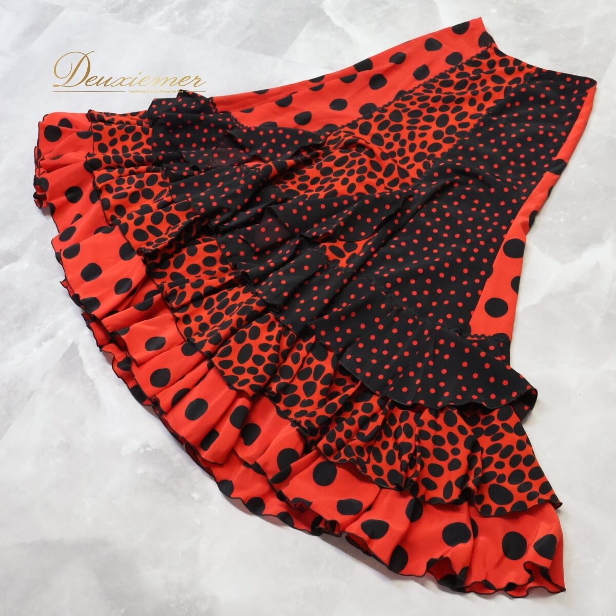 フラメンコ 衣装 ファルダ スカート ソニアジョーンズ SONIA JOHNES レッド系 赤 黒 ボランテ フリル レース 水玉 ドット 柄 模様 フラメンコ スカート 女性用 衣装 おしゃれ ステージ衣装 ダンス衣装 豪華 レトロ フェス